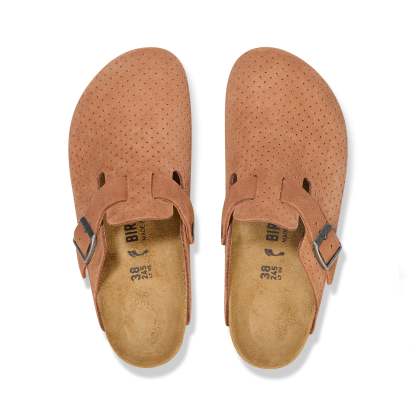 Classic and comfortable, the birkenthtstock Boston clog has become a coveted, year-round favourite. This soft perforated dotted suede leather gives your style new dimension with the material you love most. It all rests on our contoured footbed, for the ultimate in support.
