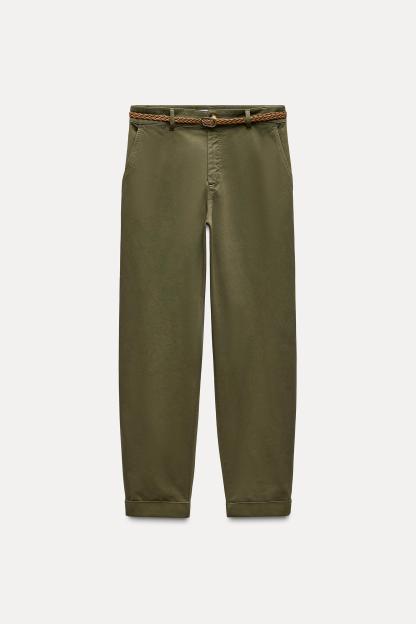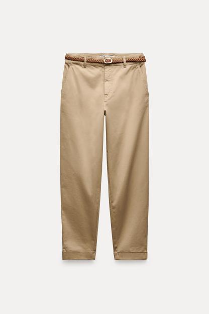 BRAIDED BELTED CHINO PANTS