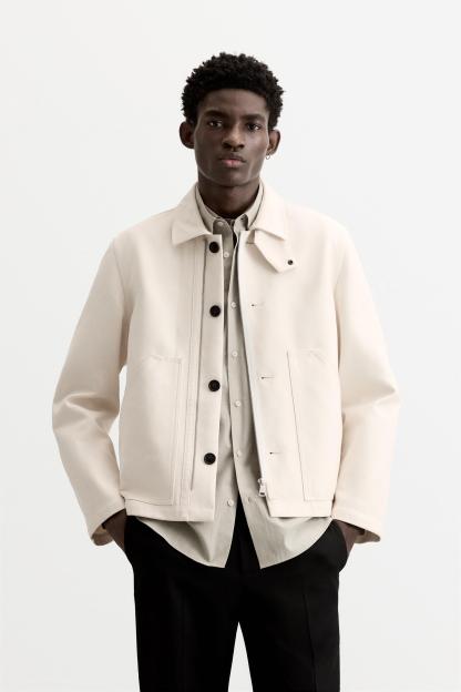 3% polyamideWhich has at least:OUTER SHELL97% OCS certified organically grown cottonCERTIFIED MATERIALSOCS CERTIFIED ORGANICALLY GROWN COTTONThis fiber is produced without using artificial fertilizers or pesticides and is grown from seeds that have not been genetically modified. We are currently working with the Organic Content Standard (OCS) that supervises the process from the source to the end product.Certified by Intertek 193341More informationCARECaring for your clothes is caring for the environment.To keep your jackets and coats clean, just freshen them out and wipe them with a cloth or clothing brush. This is a more delicate process with fabrics and additionally avoids water and energy consumption from washing processes.