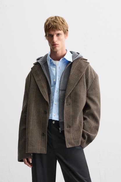 5% other fibresLINING100% polyesterWhich has at least:OUTER SHELL25% RCS-certified recycled wool70% RCS-certified recycled polyesterLINING100% RCS-certified recycled polyesterCERTIFIED MATERIALSRCS CERTIFIED RECYCLED WOOLThis material is made from recycled textile waste and used garments. Transforming waste into new materials helps limit the extraction of raw materials. It is certified to the Recycled Claim Standard (RCS), which verifies the recycled content and tracks it from source to final product.Certified by Intertek 193341More informationRCS CERTIFIED RECYCLED POLYESTERNowadays, recycled polyester is mainly made from PET plastic waste. This is a type of plastic that is widely used in a variety of items, such as plastic bottles. Using recycled materials helps limit the production of virgin polyester fiber. It is certified to the Recycled Claim Standard (RCS), which verifies the recycled content and tracks it from source to final product.Certified by Intertek 193341More informationCARECaring for your clothes is caring for the environment.To keep your jackets and coats clean, just freshen them out and wipe them with a cloth or clothing brush. If dry cleaning is necessary, try to look for dry cleaners that use environmentally respectful technologies.