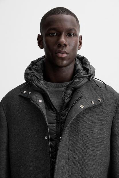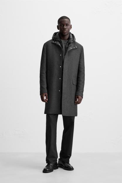 5% woolLINING100% polyesterFILLING100% polyesterCARECaring for your clothes is caring for the environment.To keep your jackets and coats clean, just freshen them out and wipe them with a cloth or clothing brush. If dry cleaning is necessary, try to look for dry cleaners that use environmentally respectful technologies.