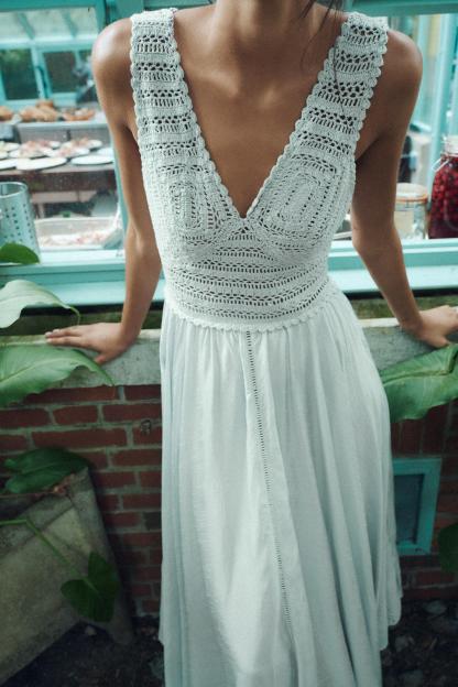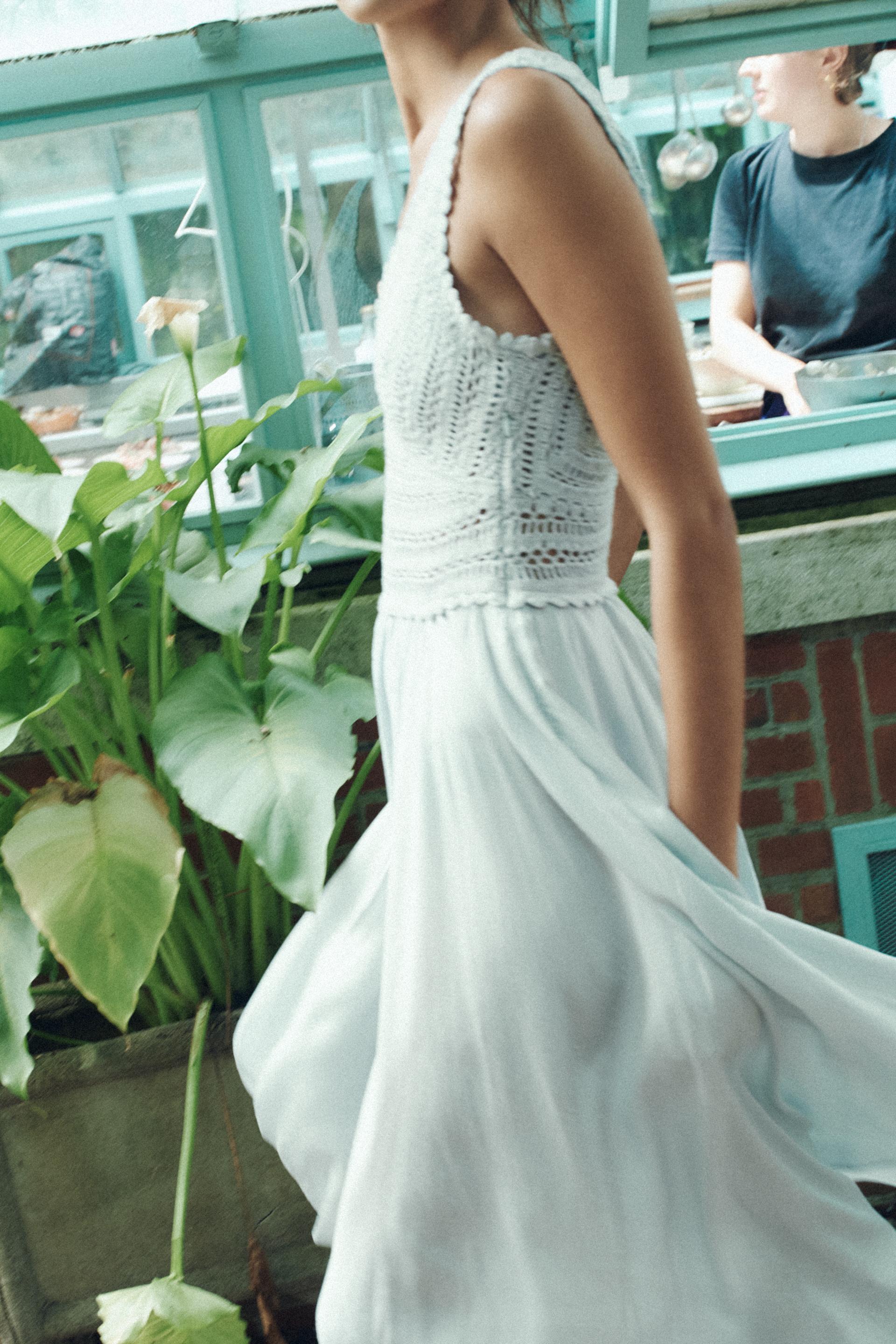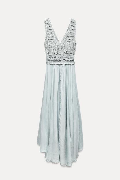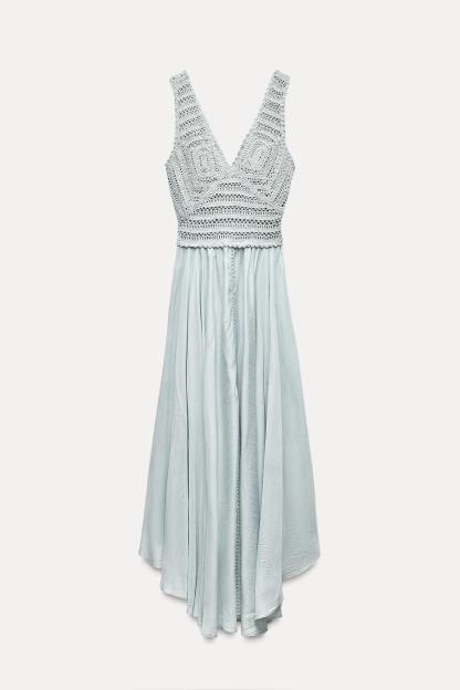 CONTRASTING CROCHET KNIT DRESS