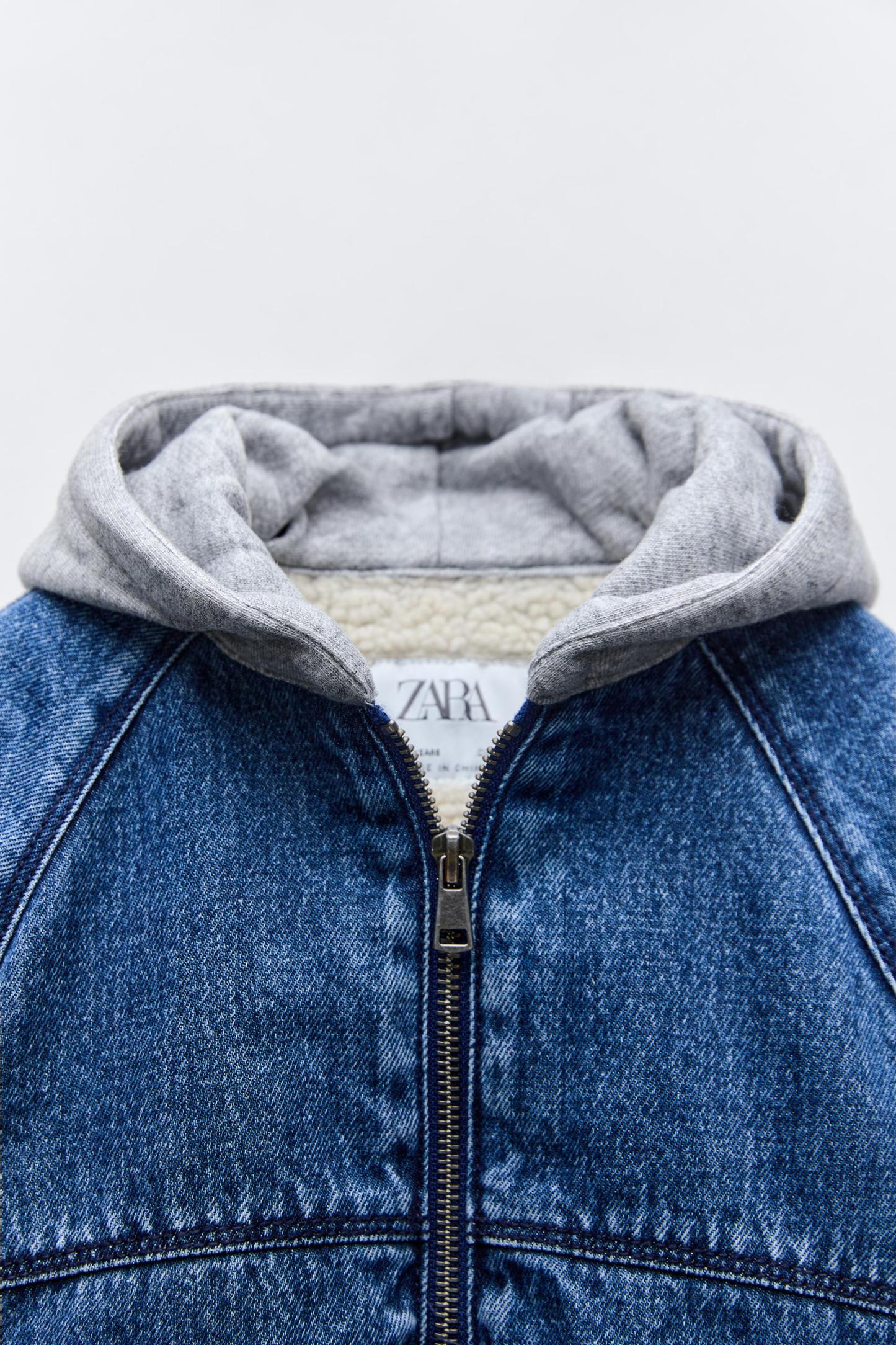 CONTRASTING HOOD DENIM JACKET