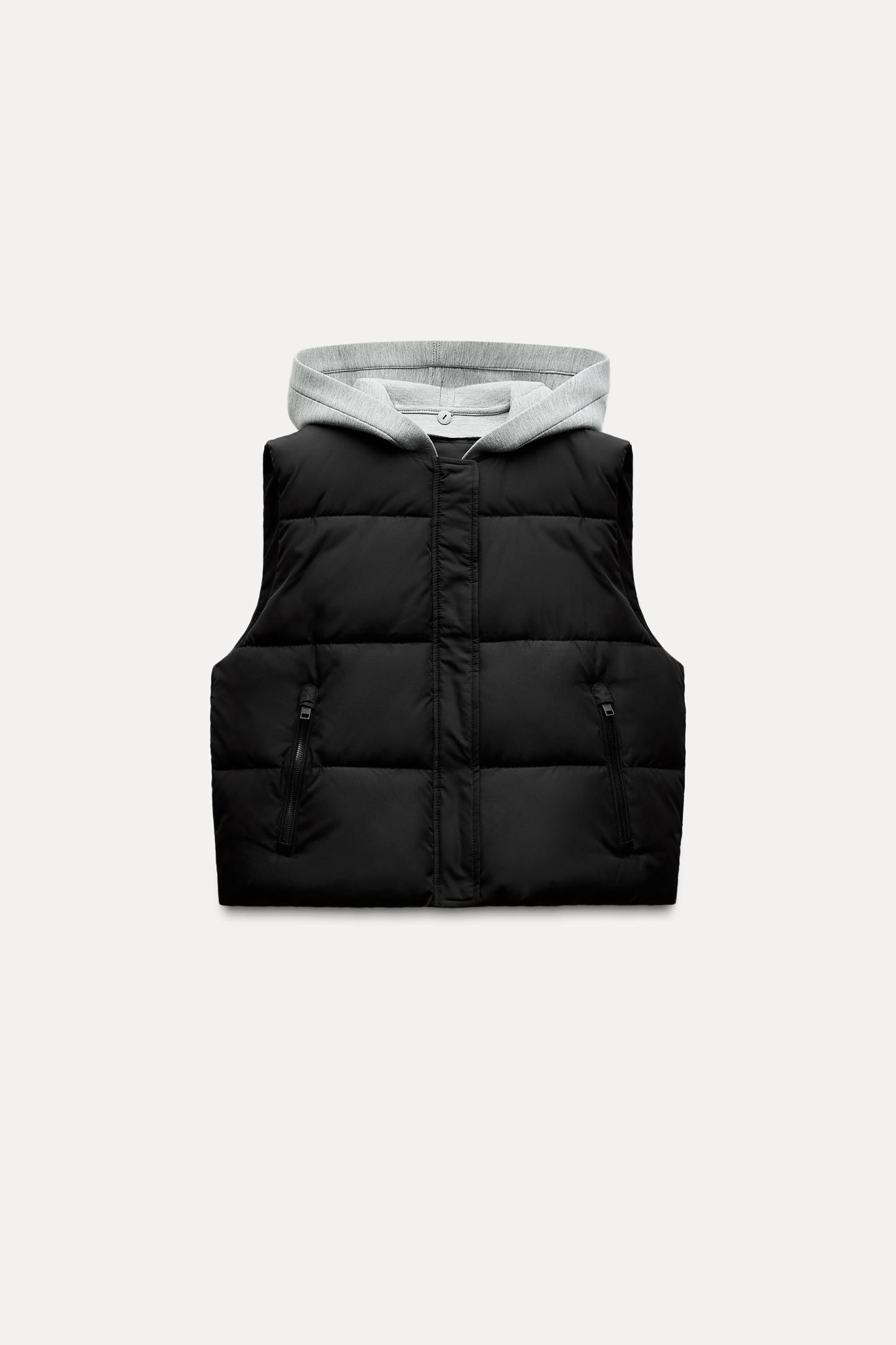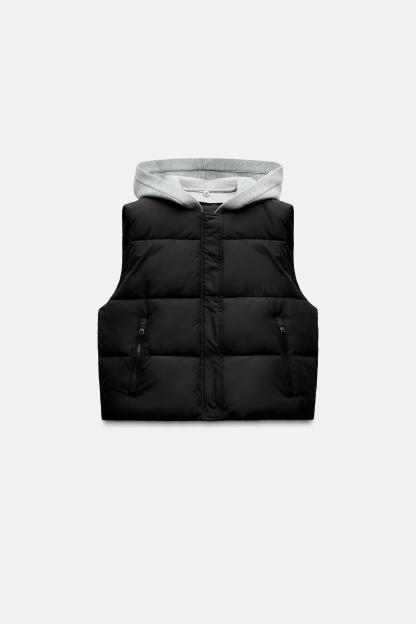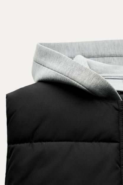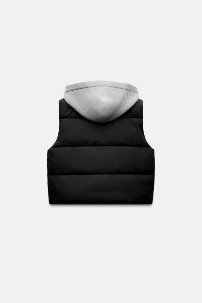CONTRASTING HOODED QUILTED VEST