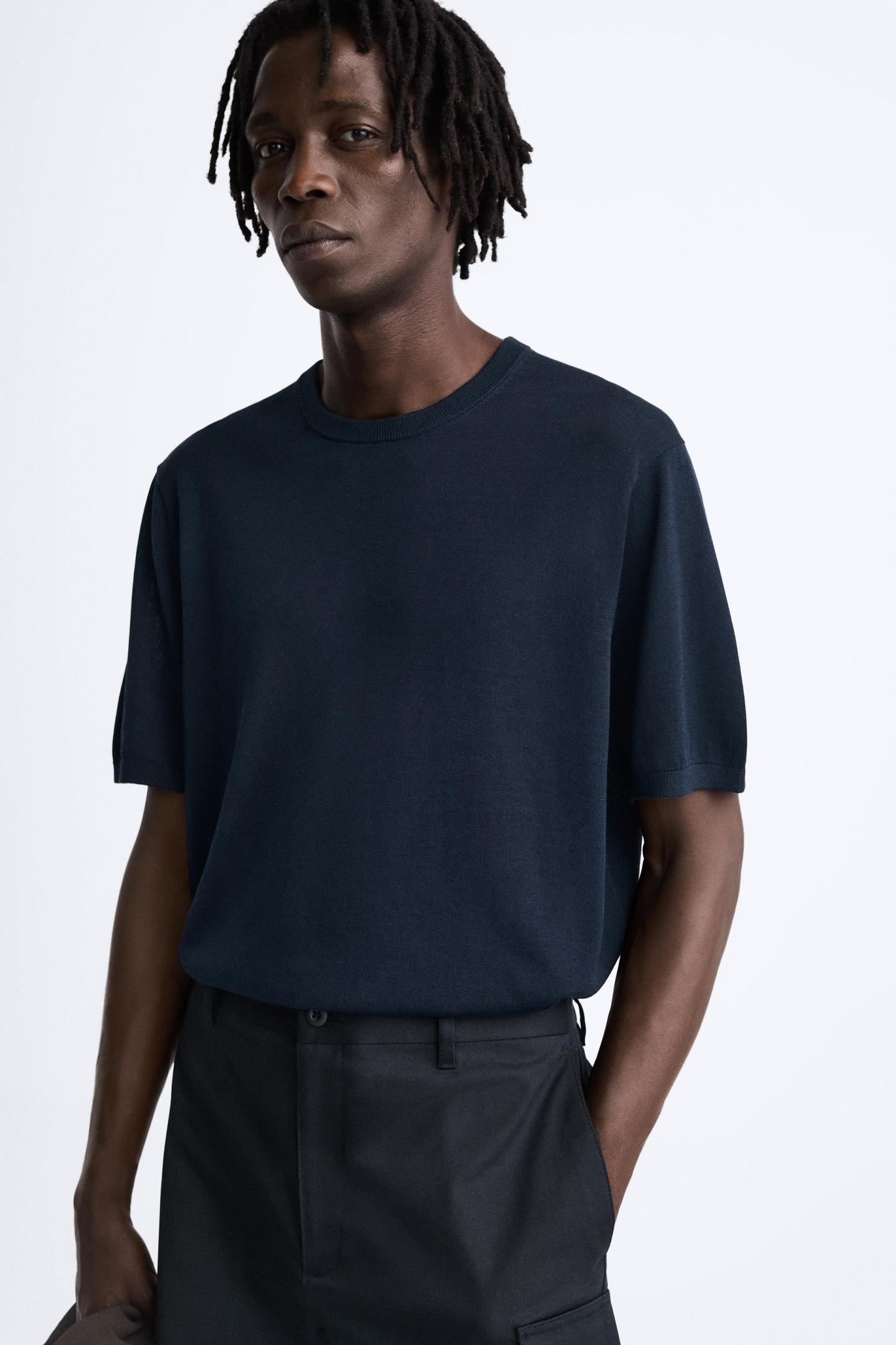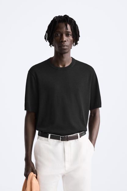 COTTON - SILK BLEND KNIT T-SHIRT