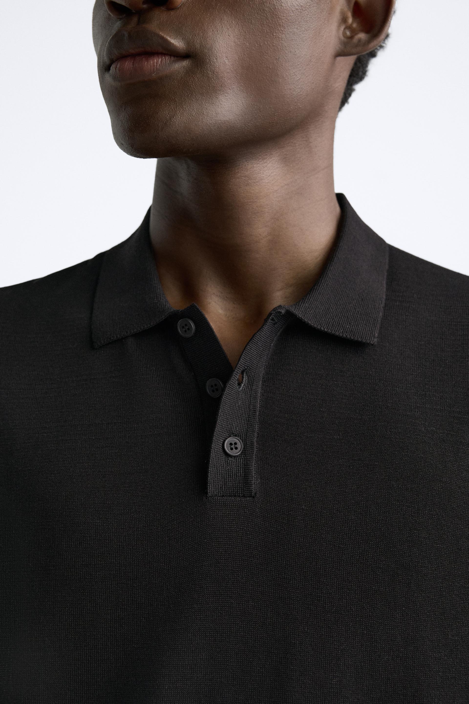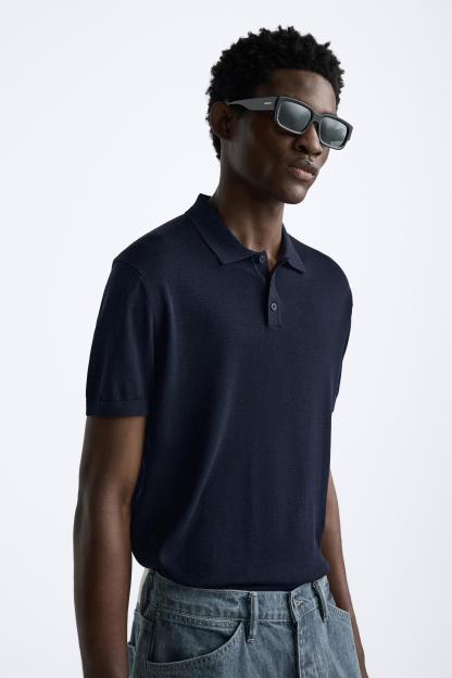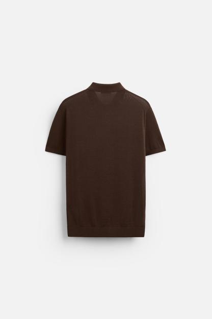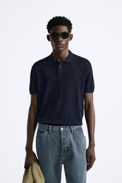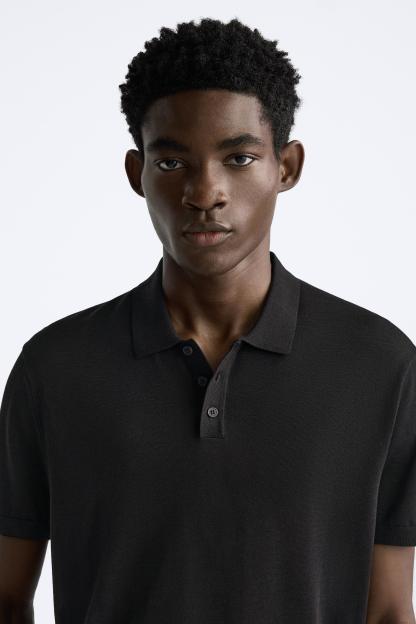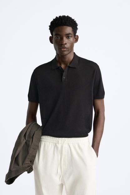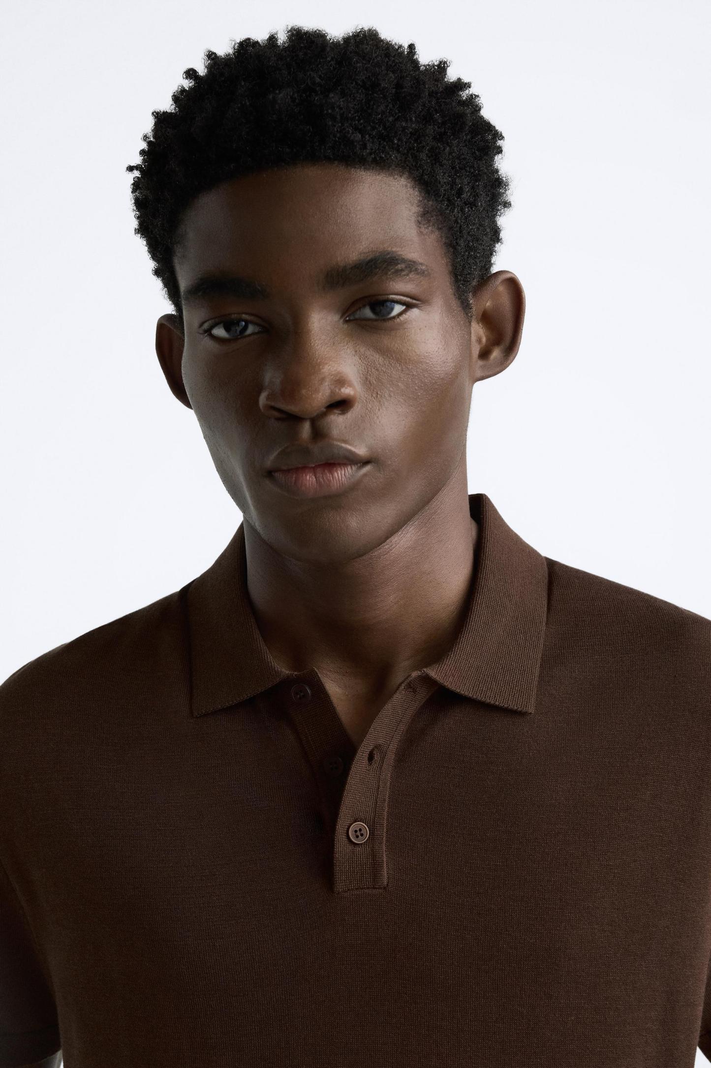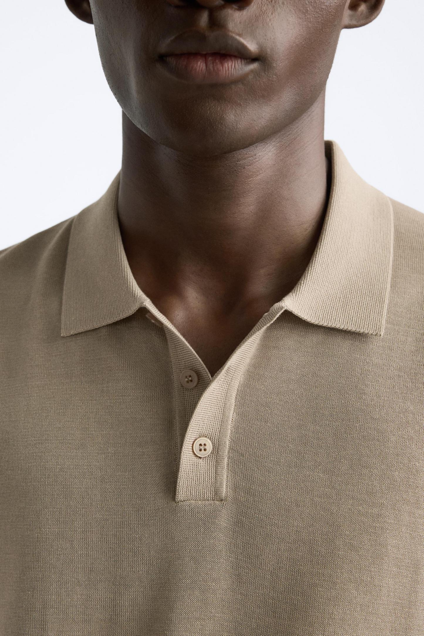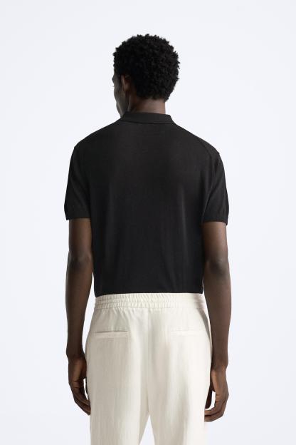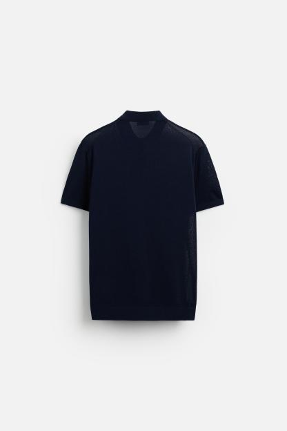 Cotton and silk blend polo shirt. Lapel collar with front button closure and short sleeves. Rib trim.