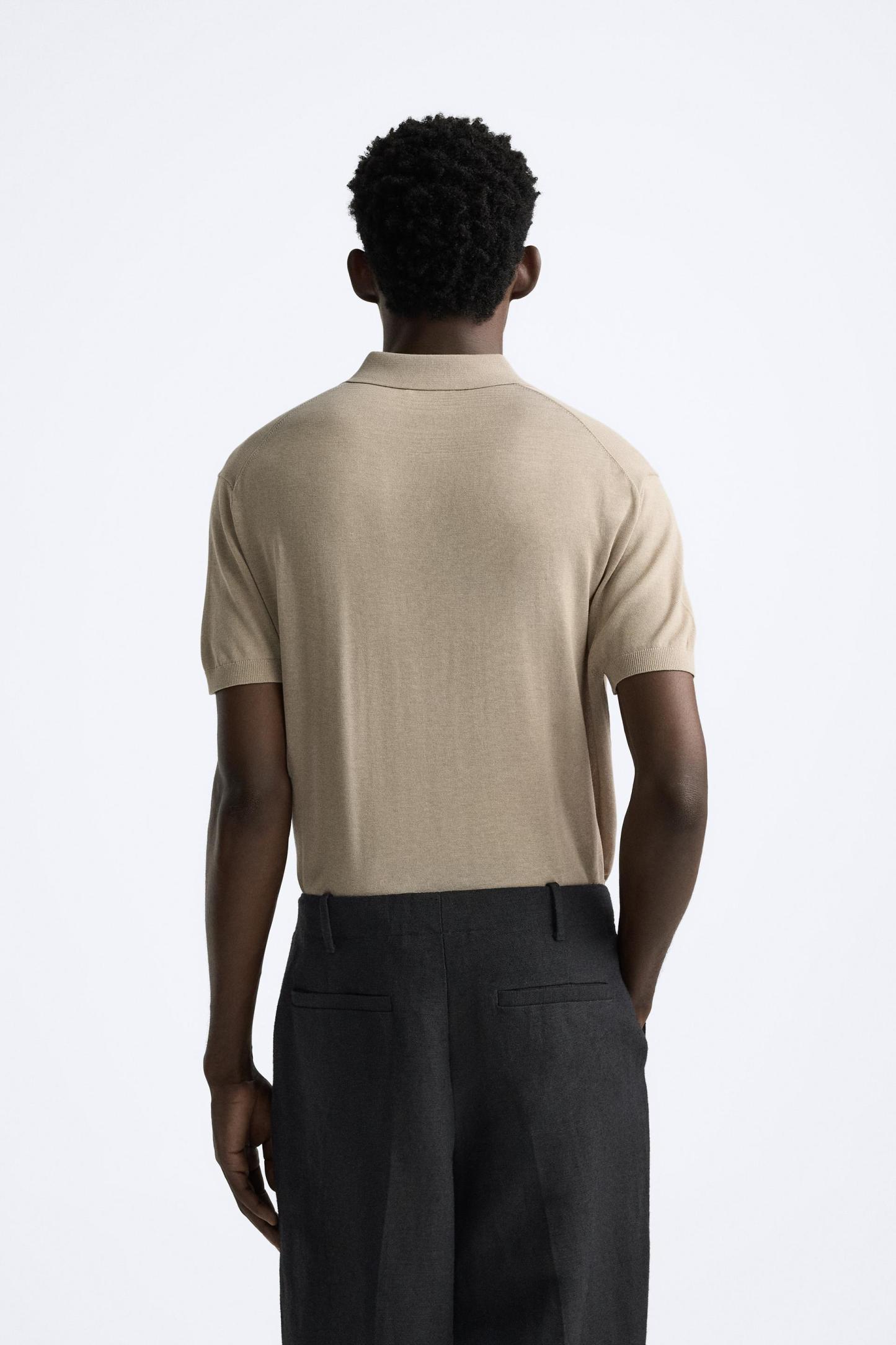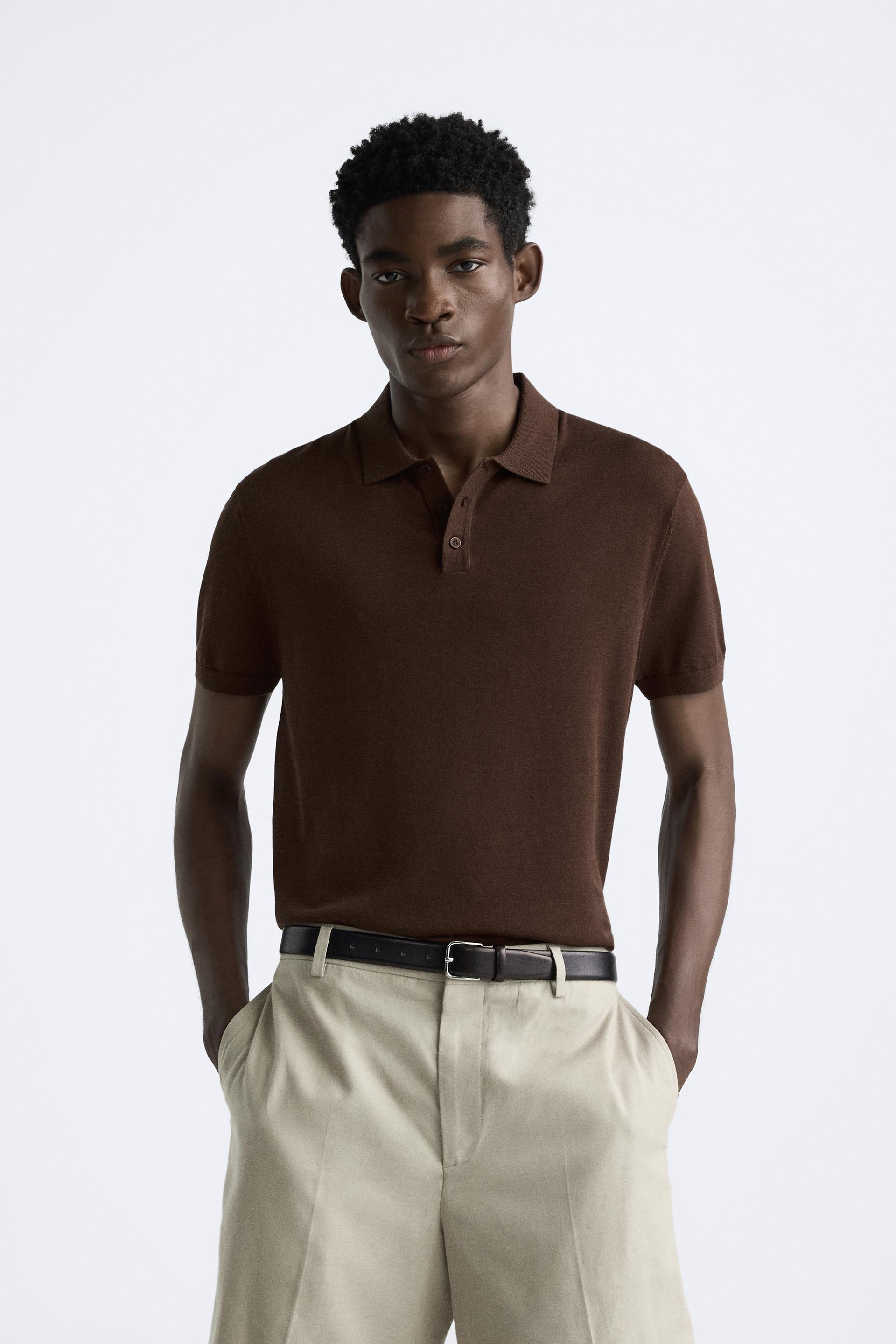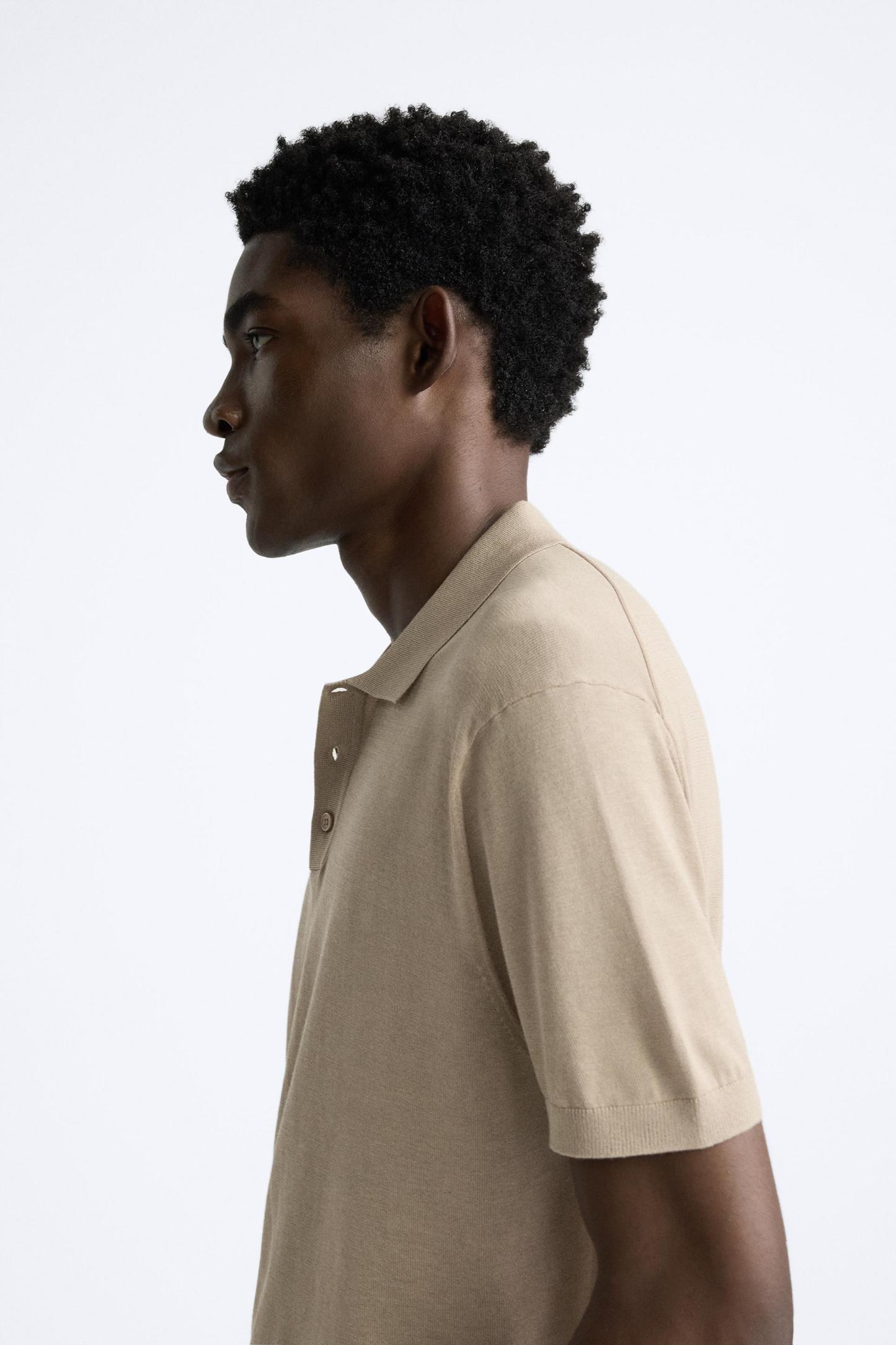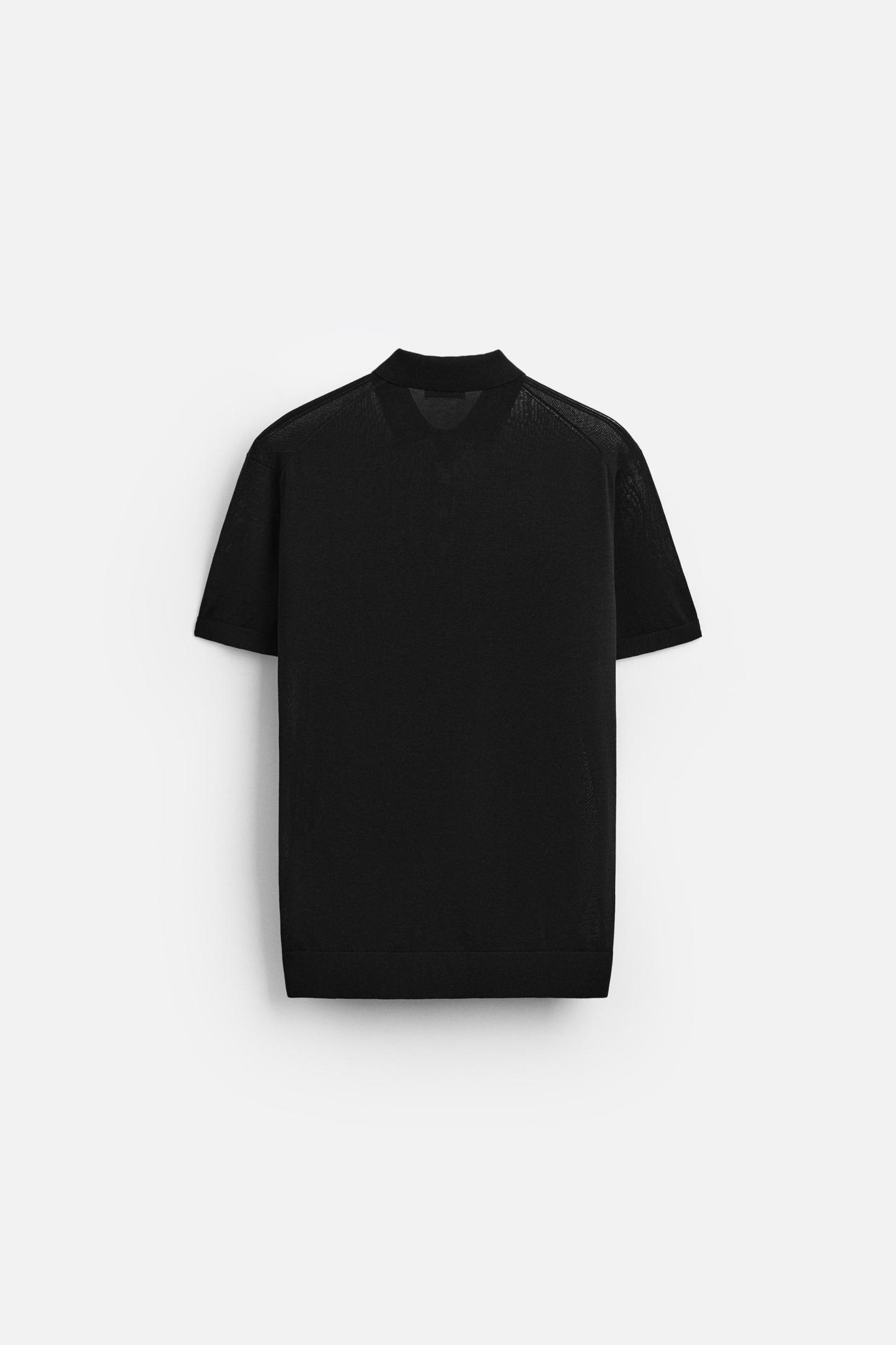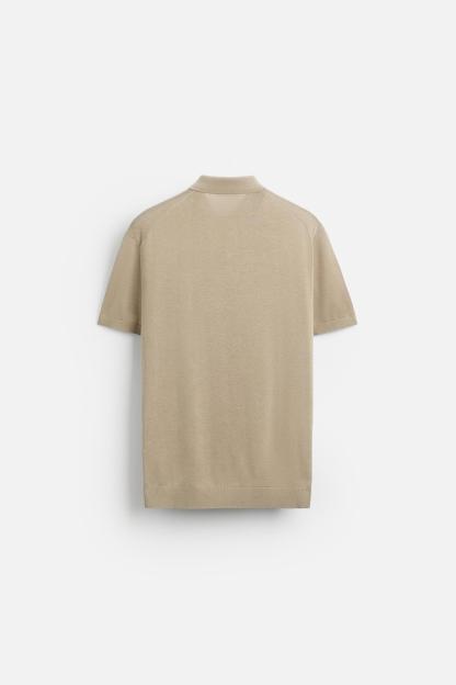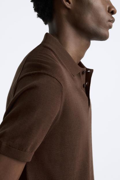 Cotton and silk blend polo shirt. Lapel collar with front button closure and short sleeves. Rib trim.