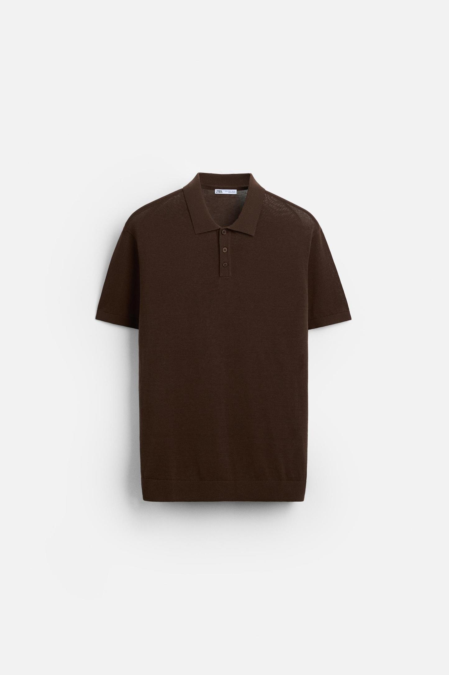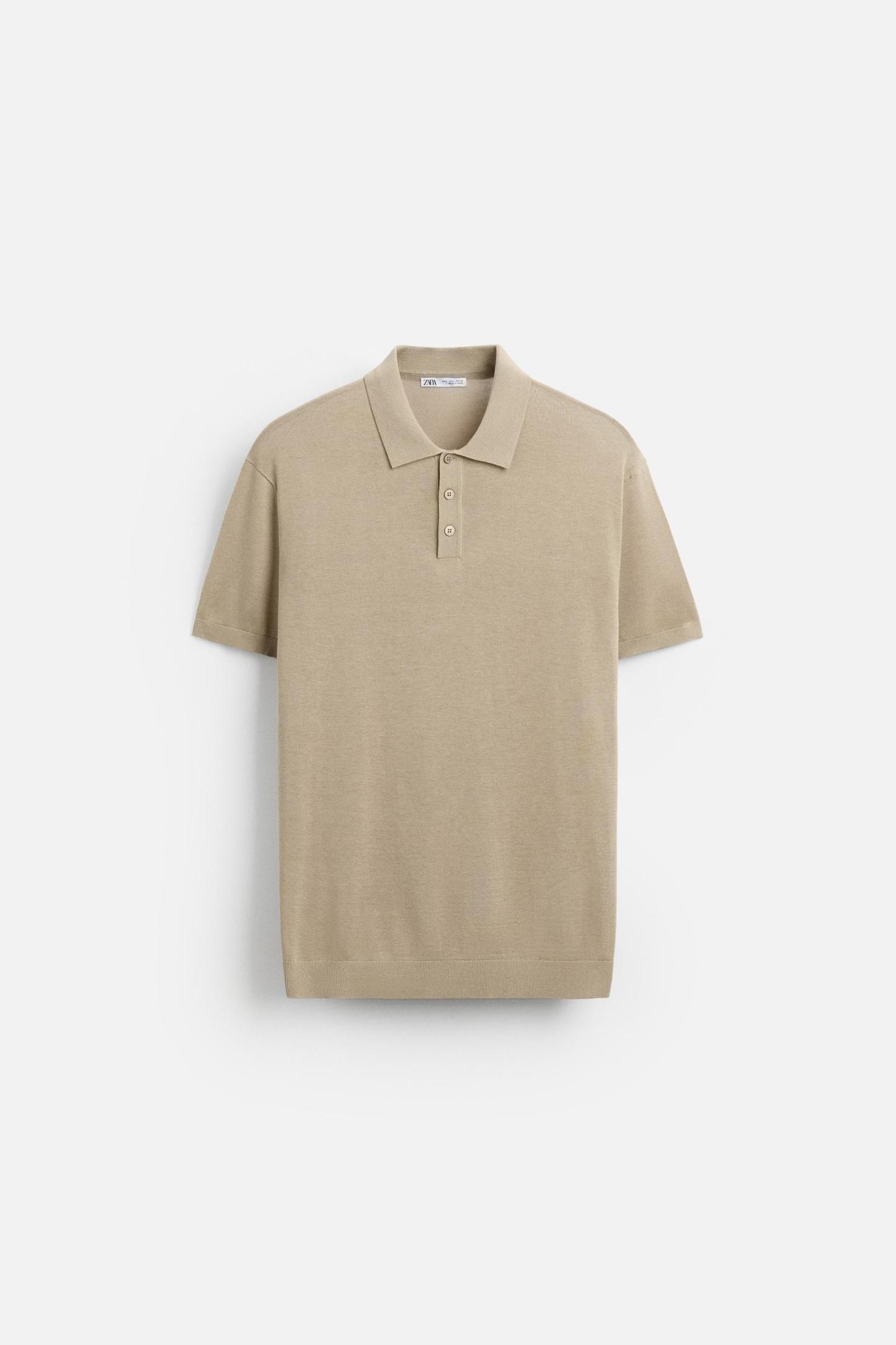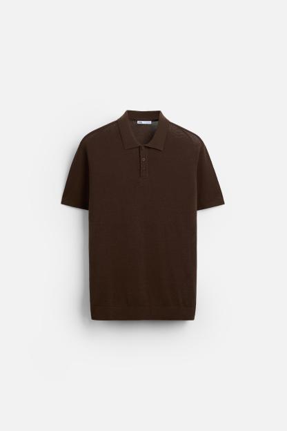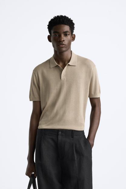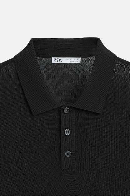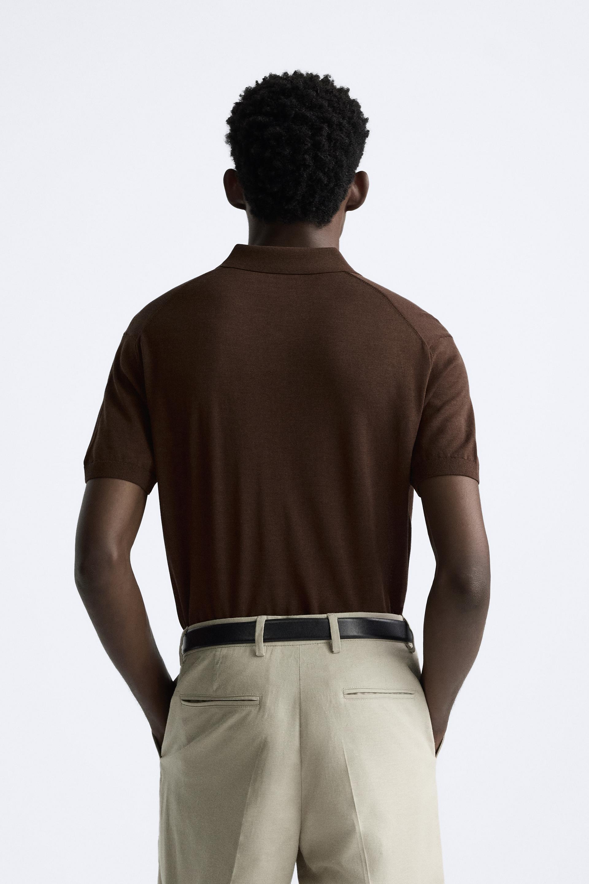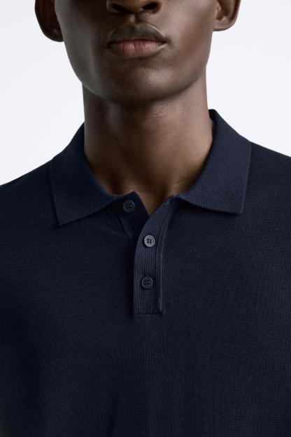 Cotton and silk blend polo shirt. Lapel collar with front button closure and short sleeves. Rib trim.