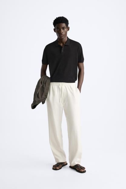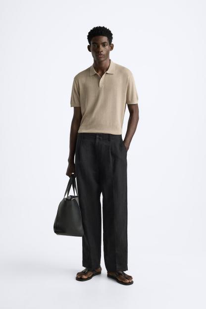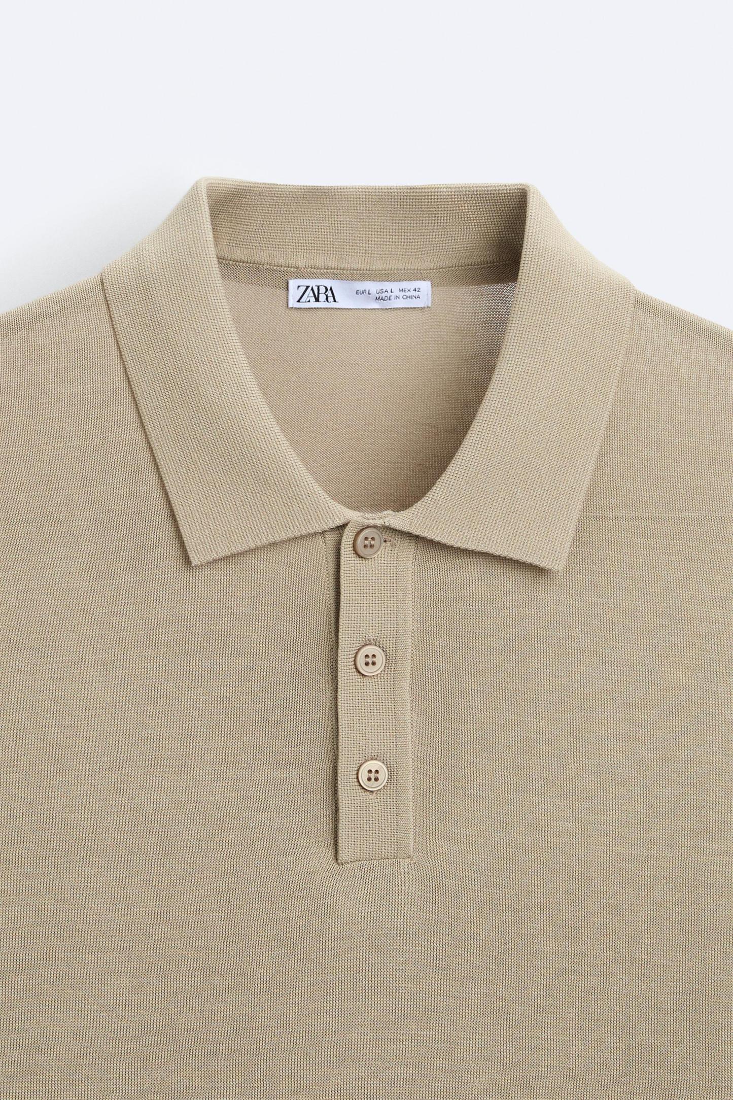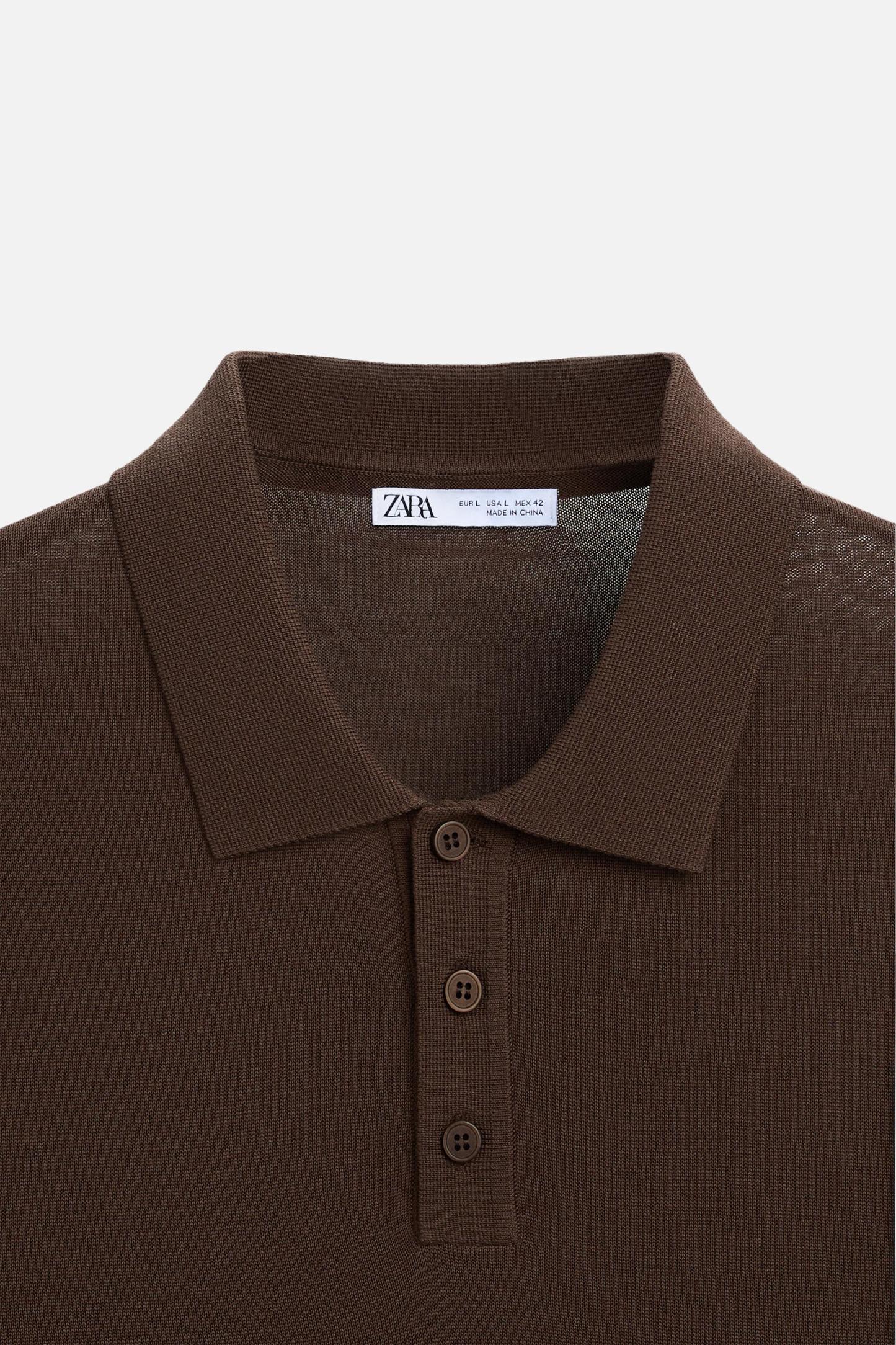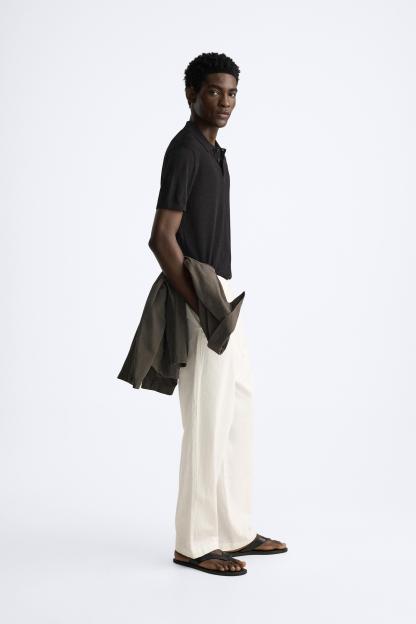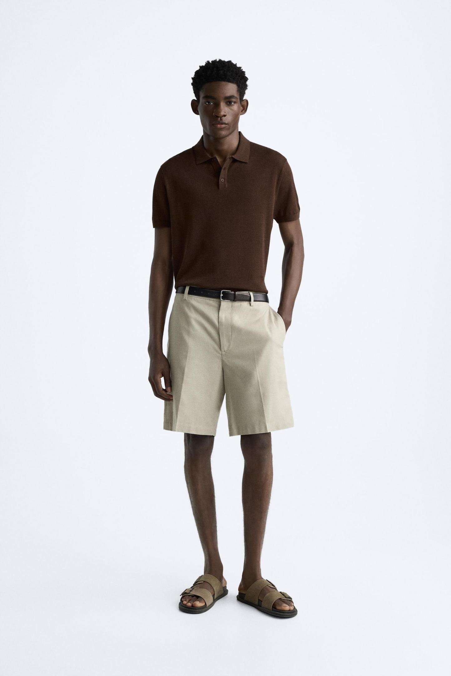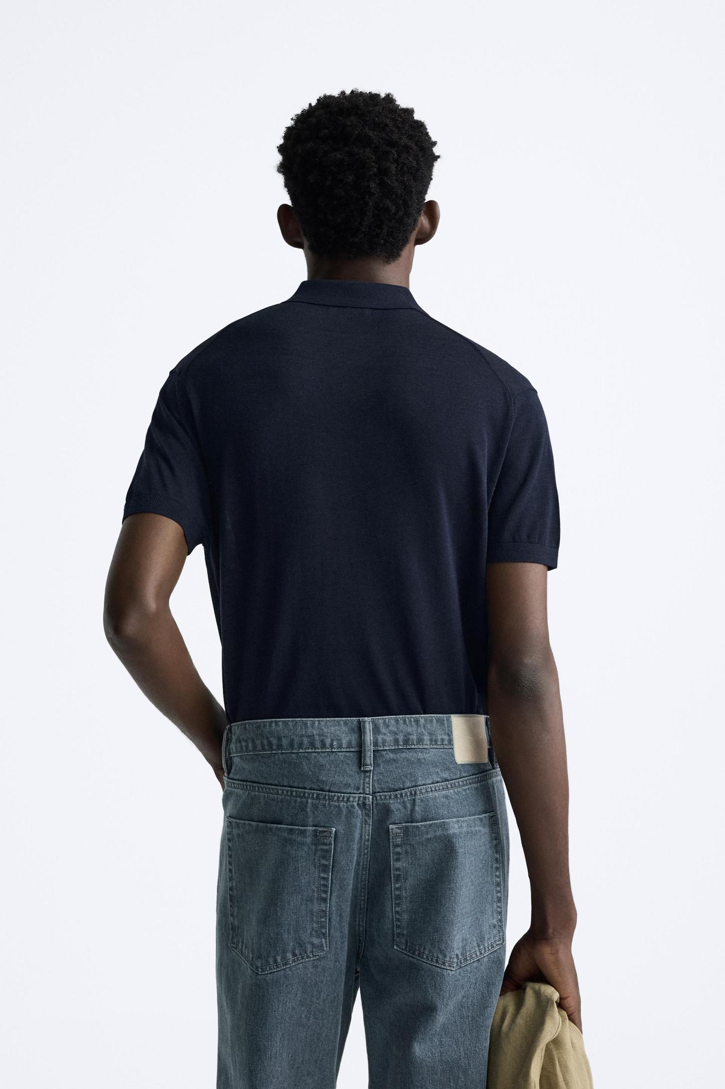 Cotton and silk blend polo shirt. Lapel collar with front button closure and short sleeves. Rib trim.