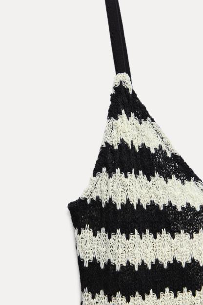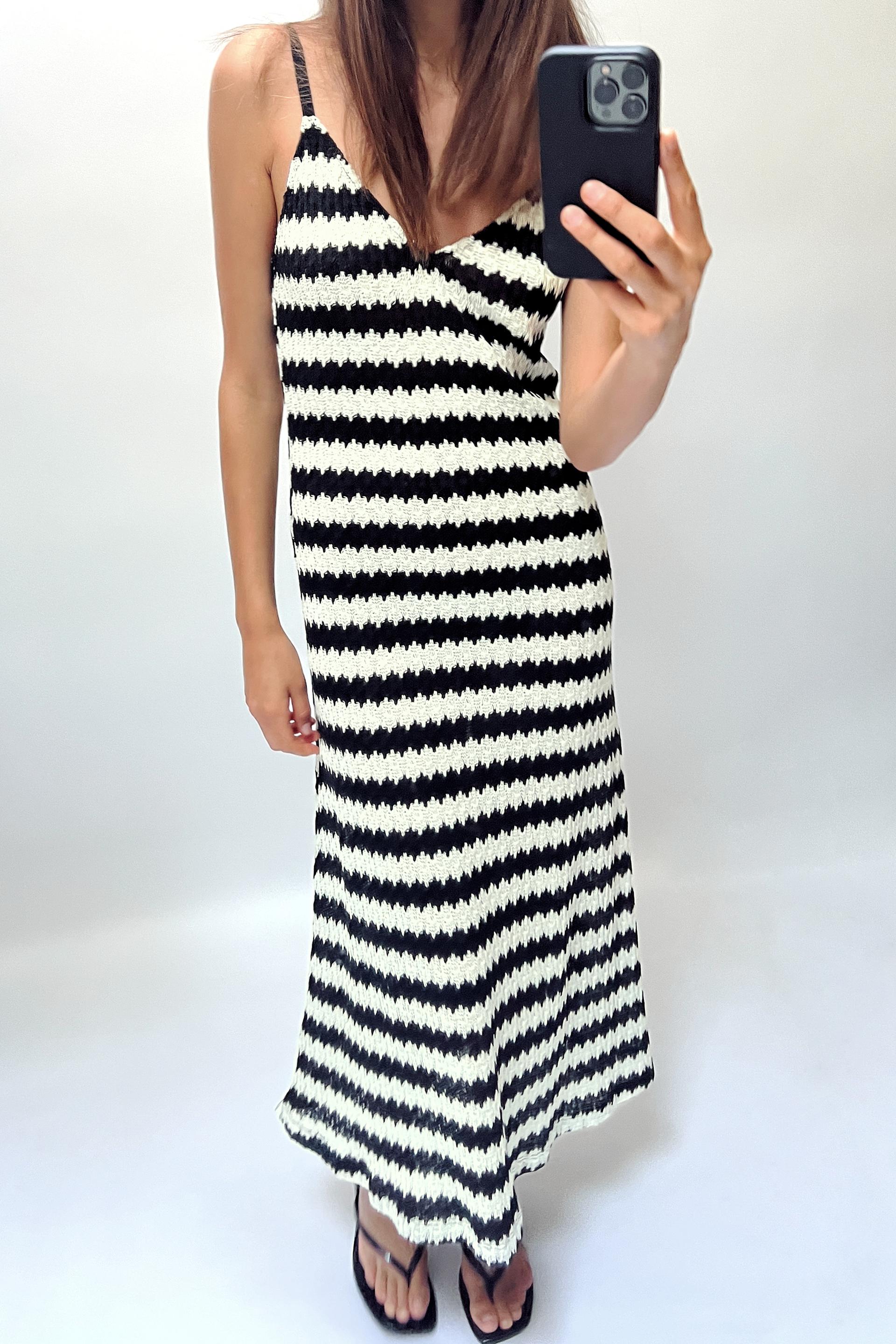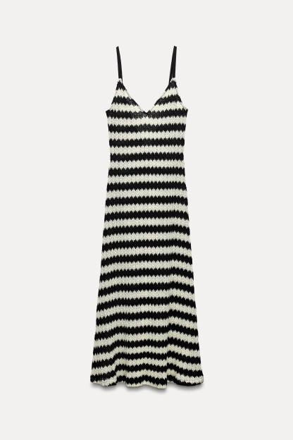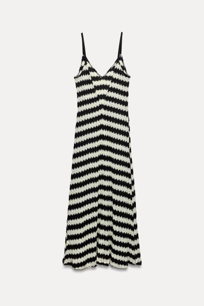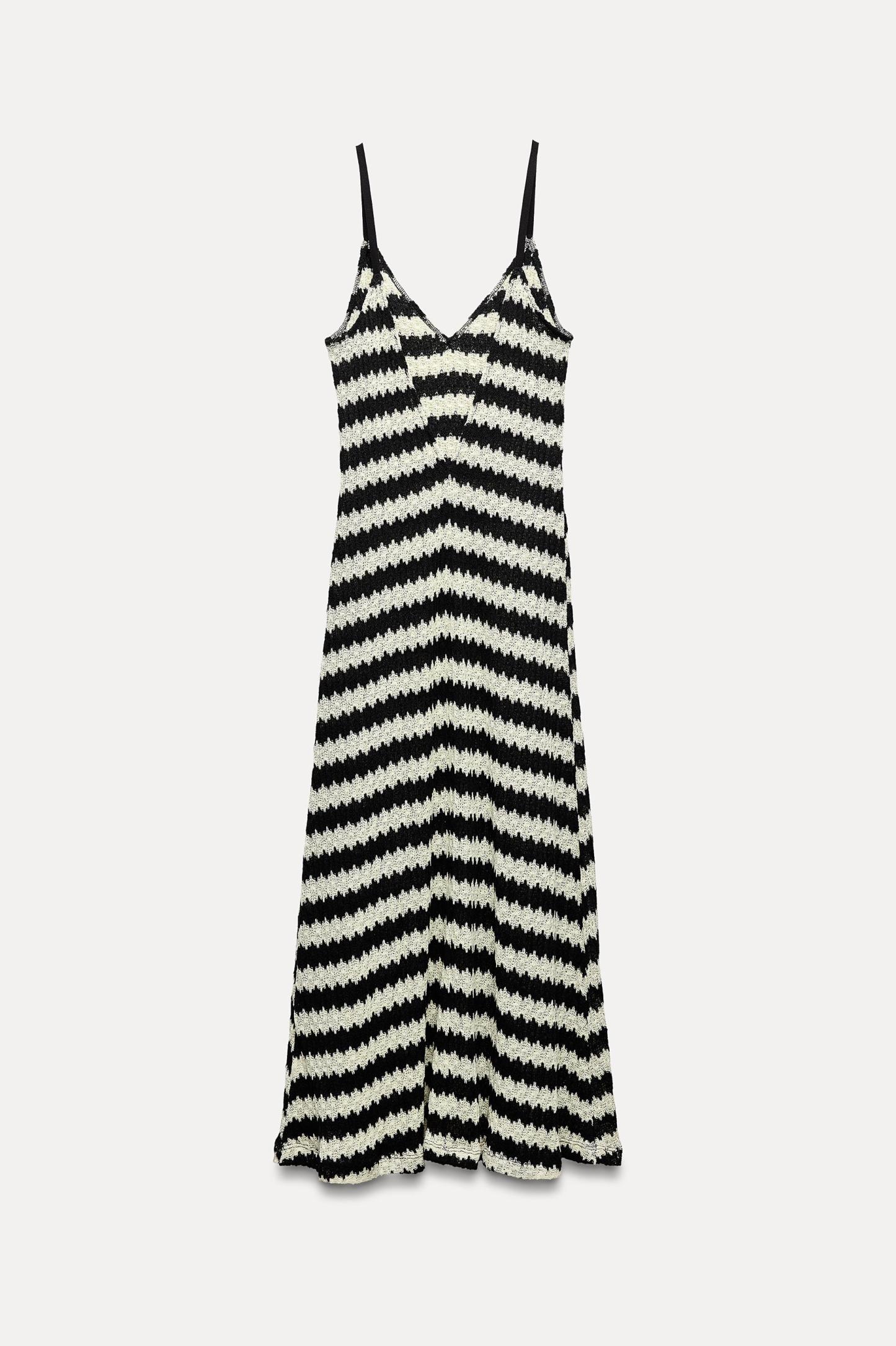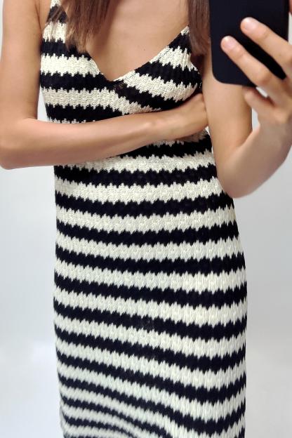 Cotton blend dress. V-neckline and wide straps. A-line silhouette.