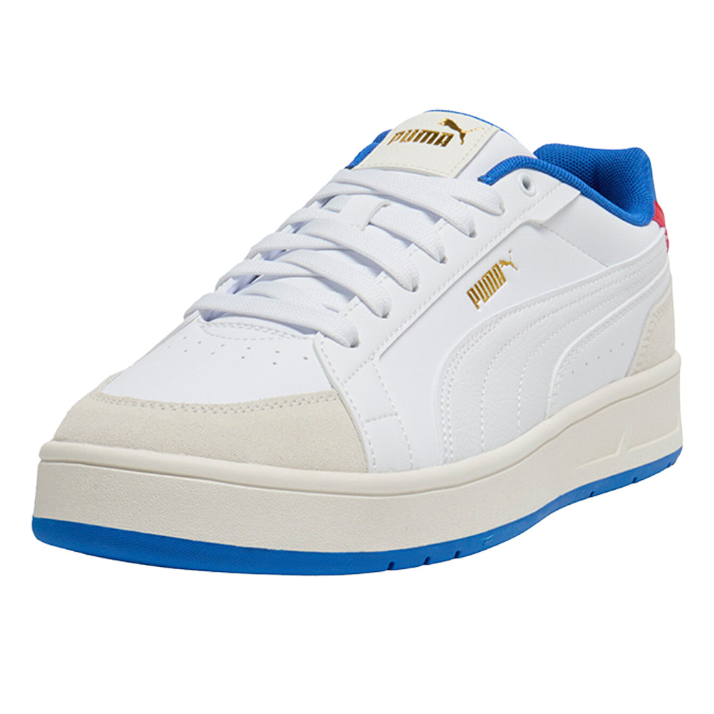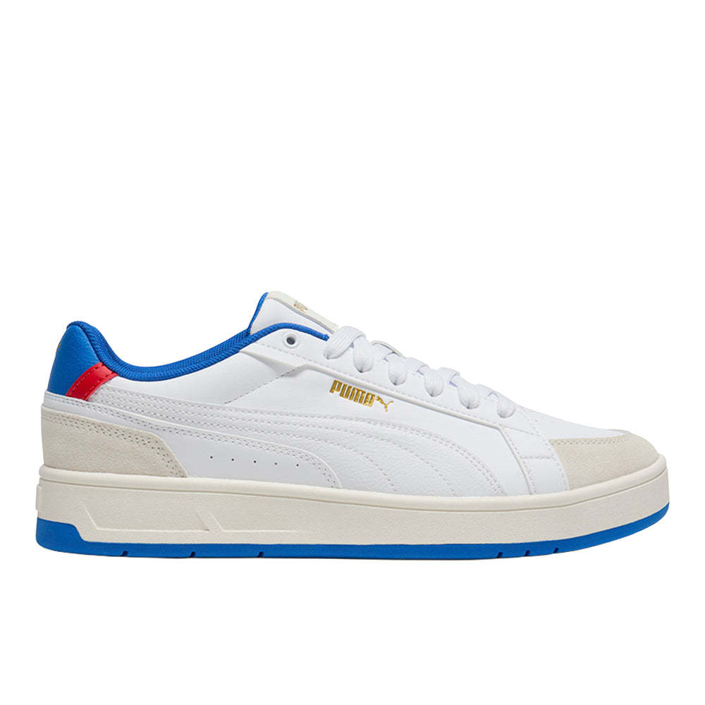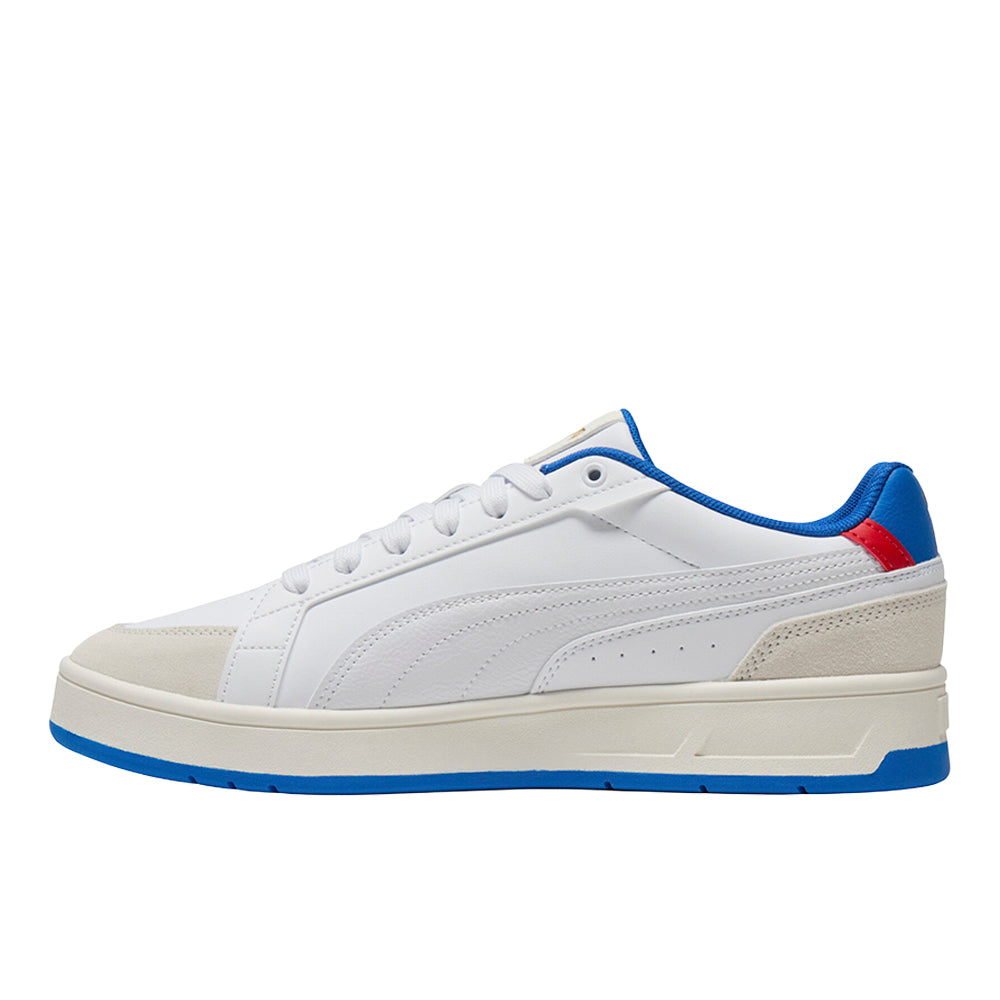 A heritage Formstrip and Puthtma cat add a touch of brand charm to the low, streamlined profile of this throwback sneaker with suede toe and heel overlays.