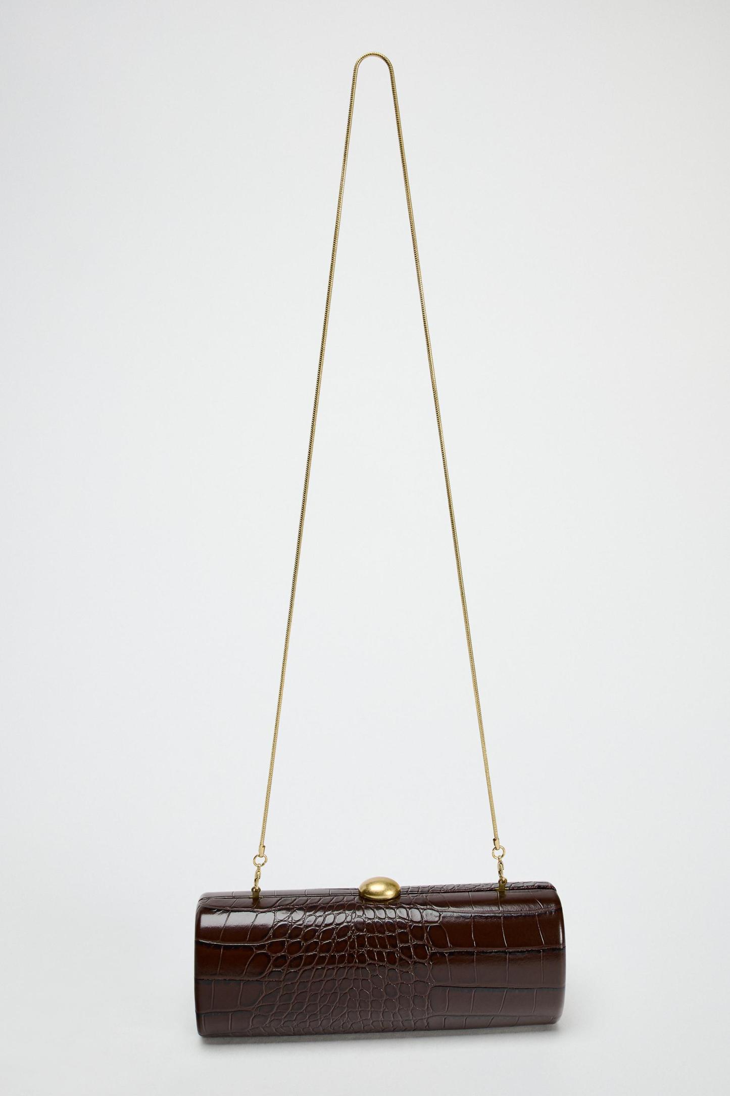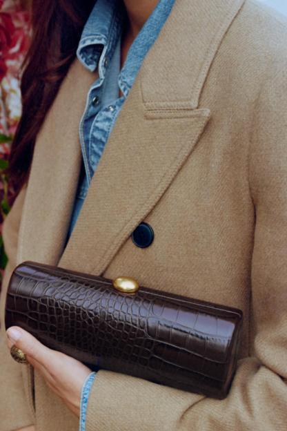 COMPOSITION & CARECOMPOSITIONWe work with monitoring programs to guarantee compliance with the social, environmental, and health and safety standards of our products. To assess its compliance, we have developed an audit program and plans for continual improvement.OUTER SHELLMAIN MATERIAL100% polyurethaneSHOULDER STRAP100% brassLINING100% polyesterCARECaring for your clothes is caring for the environment.Simple actions like washing items with a dry cotton cloth or soft brush, per the characteristics of the product, can help us care for them. Whenever possible, try to use products that are respectful of the environment.