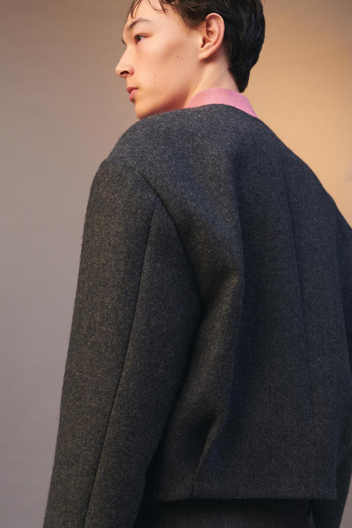 3% polyamideLINING100% viscoseWhich has at least:OUTER SHELL97% RWS certified woolCERTIFIED MATERIALSRWS CERTIFIED WOOLWe collaborate with organizations specializing in the supervision of animal welfare practices, from farm to fiber, in accordance with Responsible Wool Standard (RWS). Certified by Intertek 193341More informationCARECaring for your clothes is caring for the environment.To keep your jackets and coats clean, just freshen them out and wipe them with a cloth or clothing brush. If dry cleaning is necessary, try to look for dry cleaners that use environmentally respectful technologies.