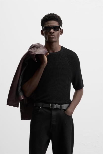 CROPPED FIT KNIT T-SHIRT