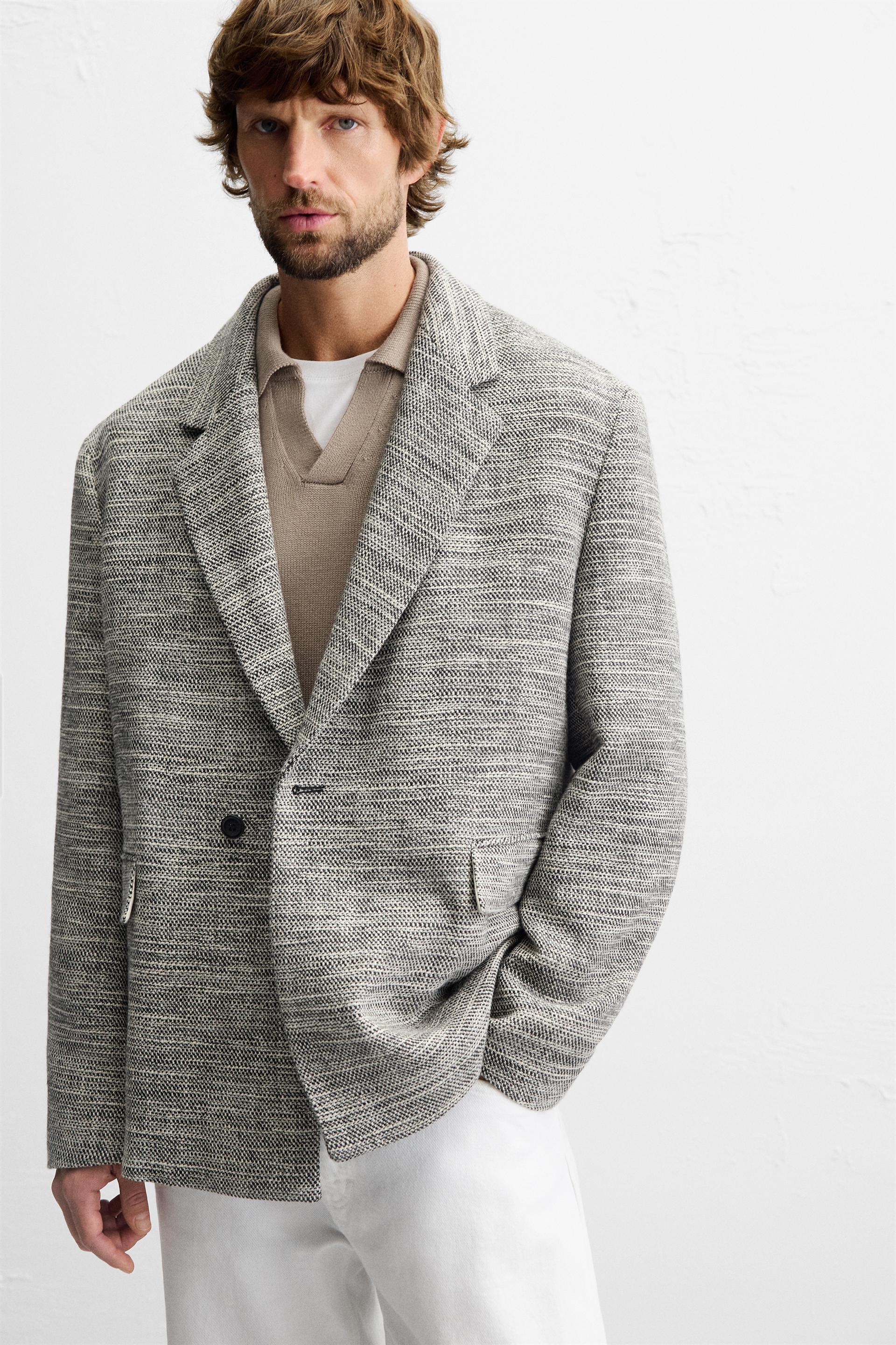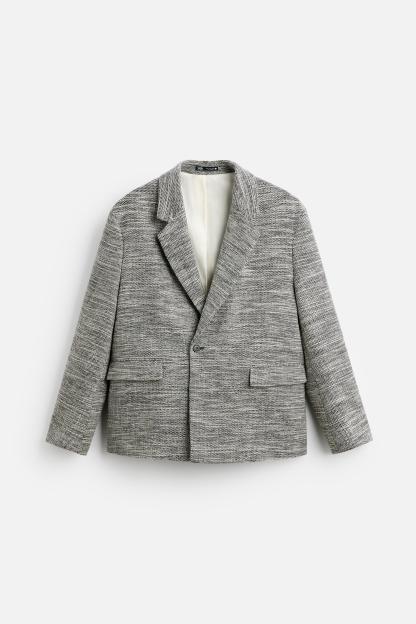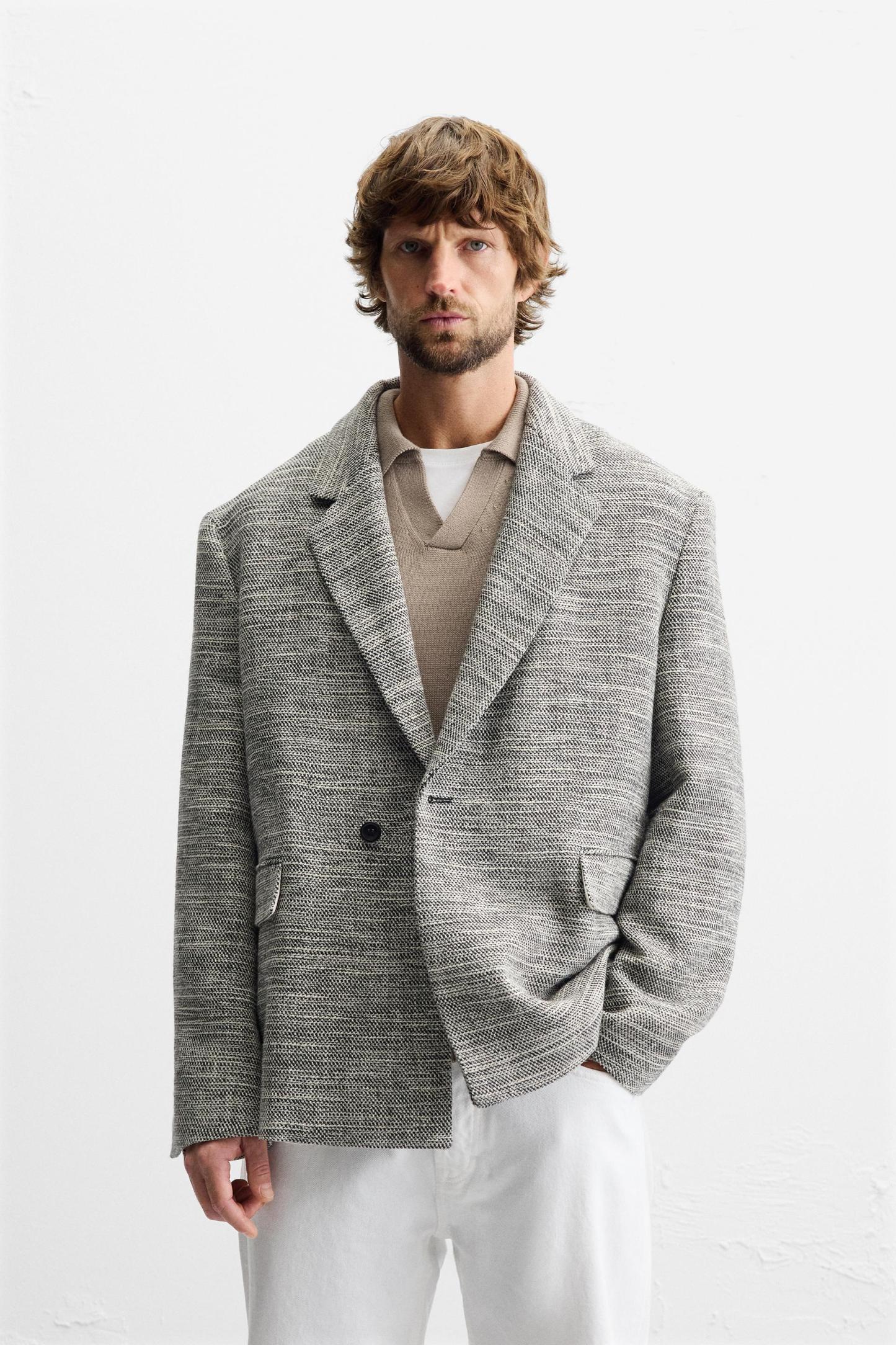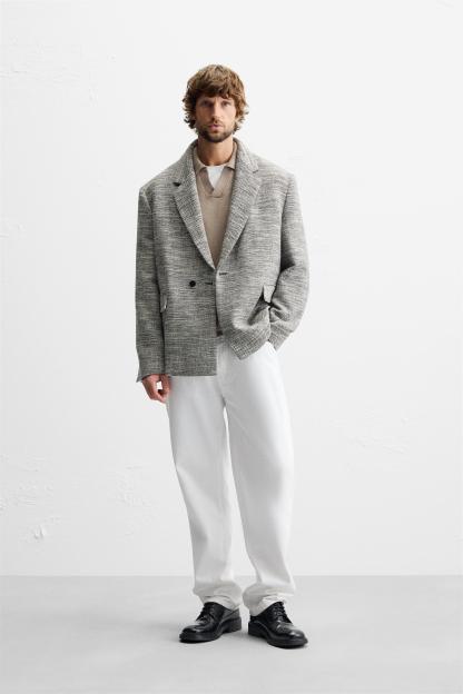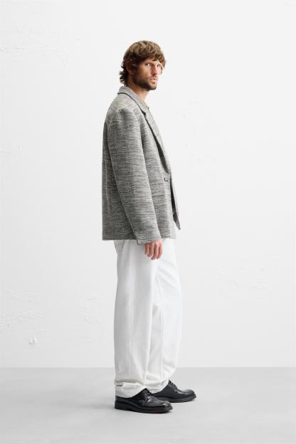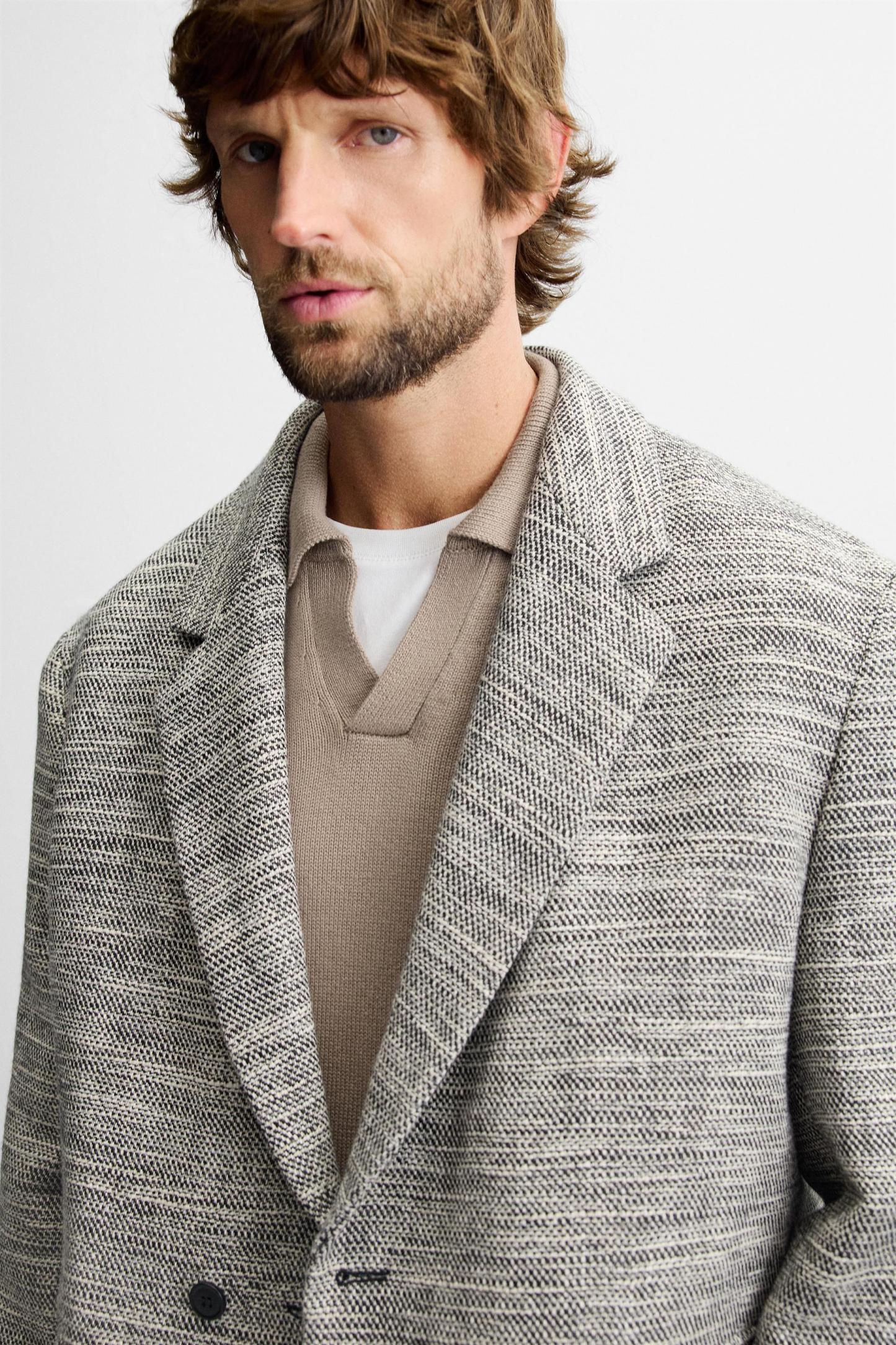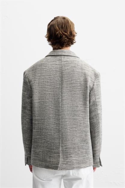 DOUBLE BREASTED TEXTURED WEAVE JACKET