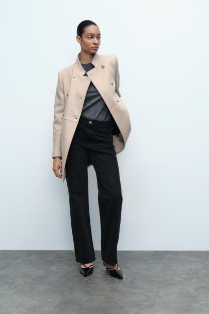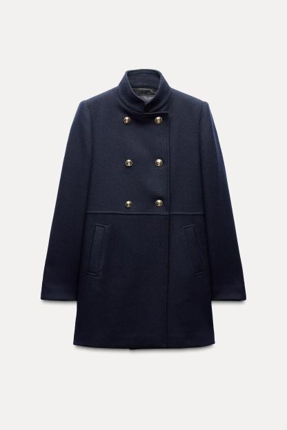 DOUBLE BREASTED WOOL BLEND COAT