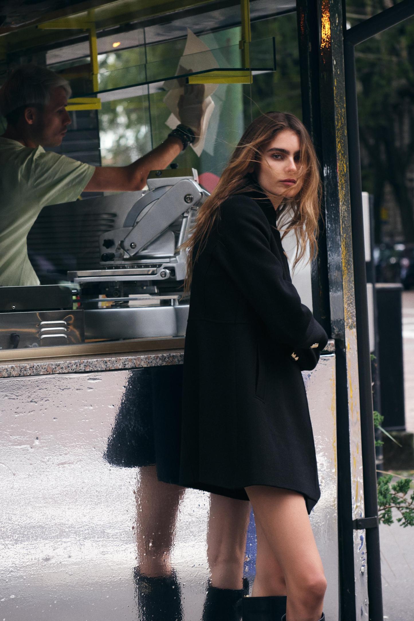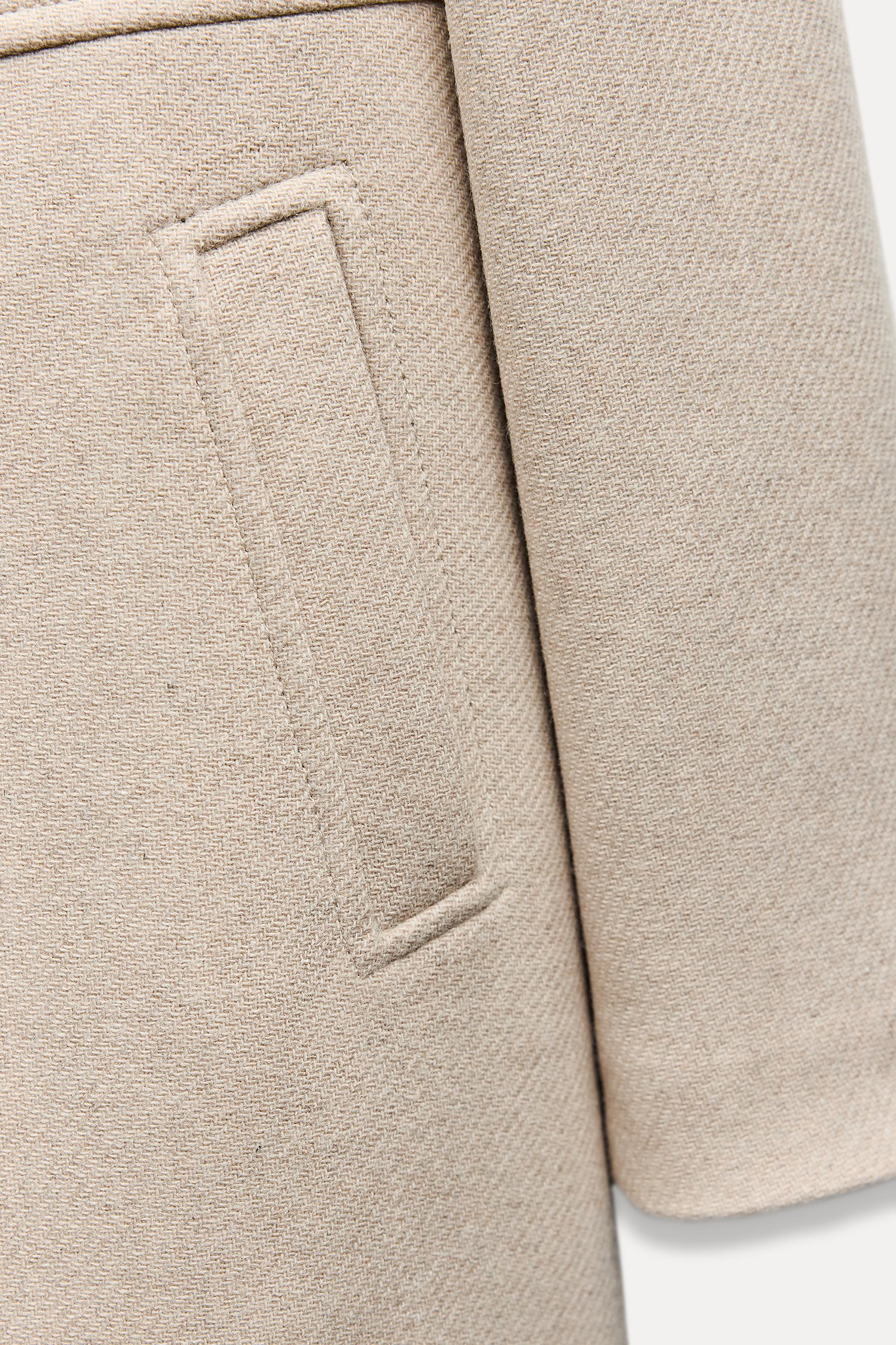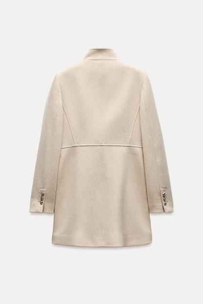 5% other fibresLINING100% acetateCARECaring for your clothes is caring for the environment.To keep your jackets and coats clean, just freshen them out and wipe them with a cloth or clothing brush. If dry cleaning is necessary, try to look for dry cleaners that use environmentally respectful technologies.