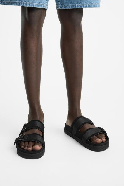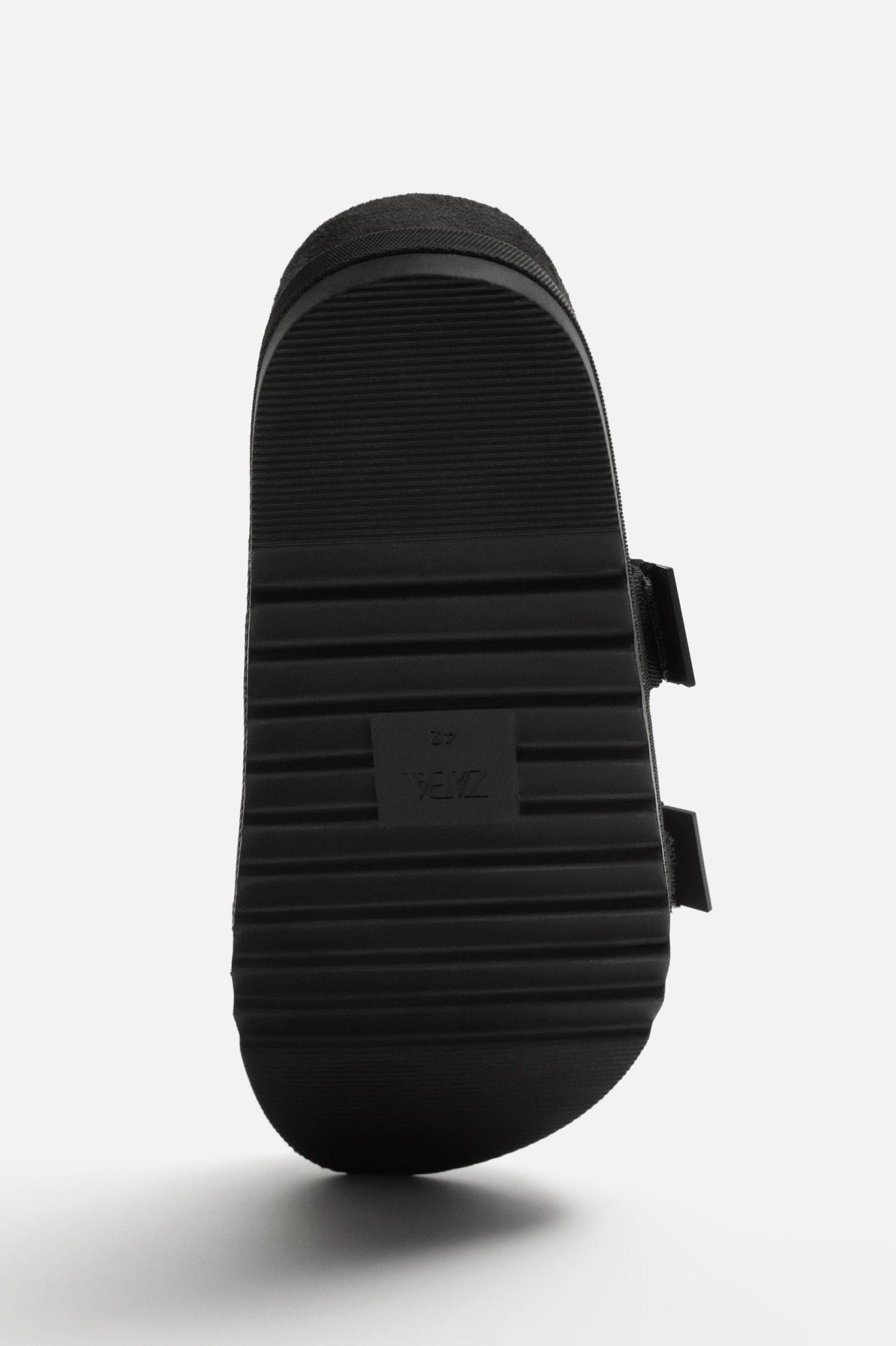 45% polyesterLINING100% polyesterSOLE100% ethylene vinyl acetateINSOLE100% polyesterCARECaring for your clothes is caring for the environment.Simple actions like washing items with a dry cotton cloth or soft brush, per the characteristics of the product, can help us care for them. Whenever possible, try to use products that are respectful of the environment.