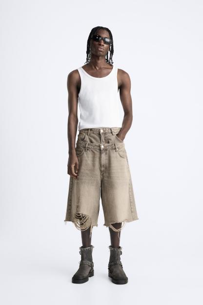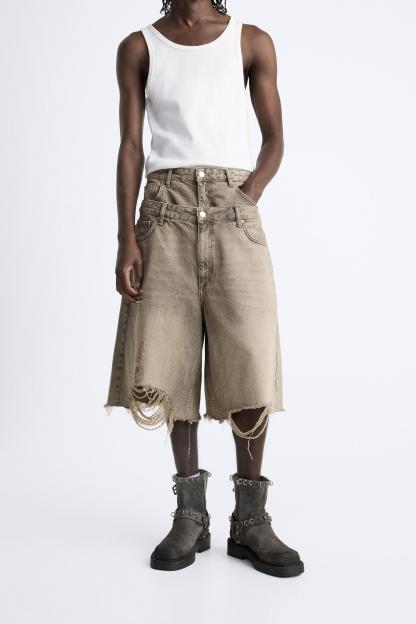 DOUBLE WAISTBAND DENIM SHORTS