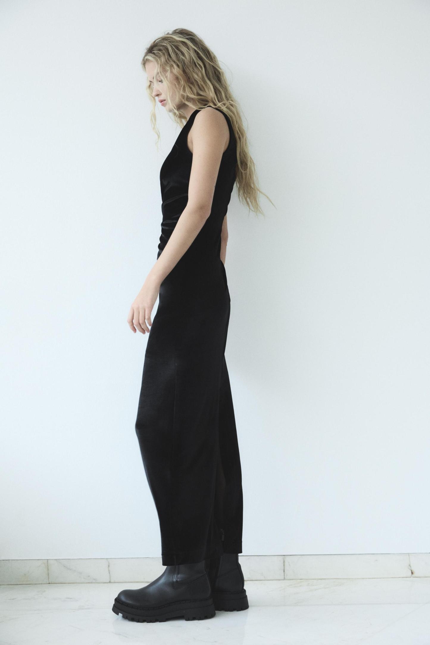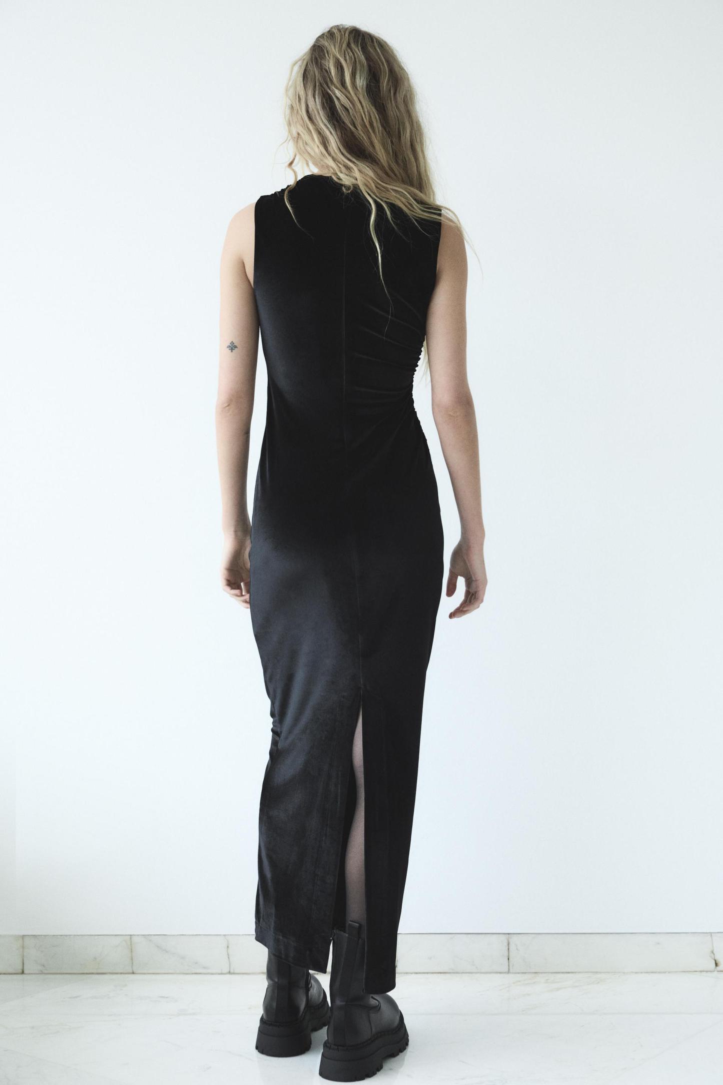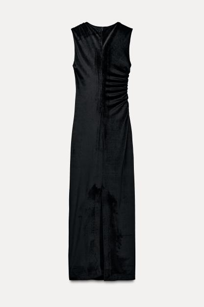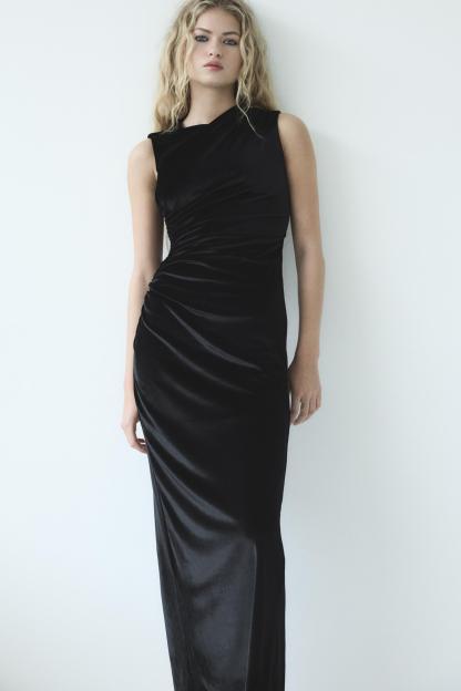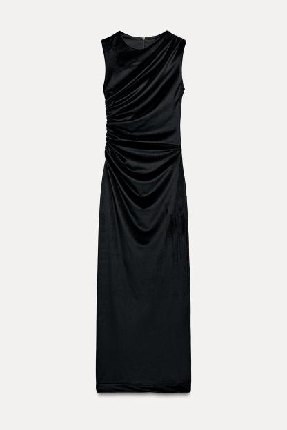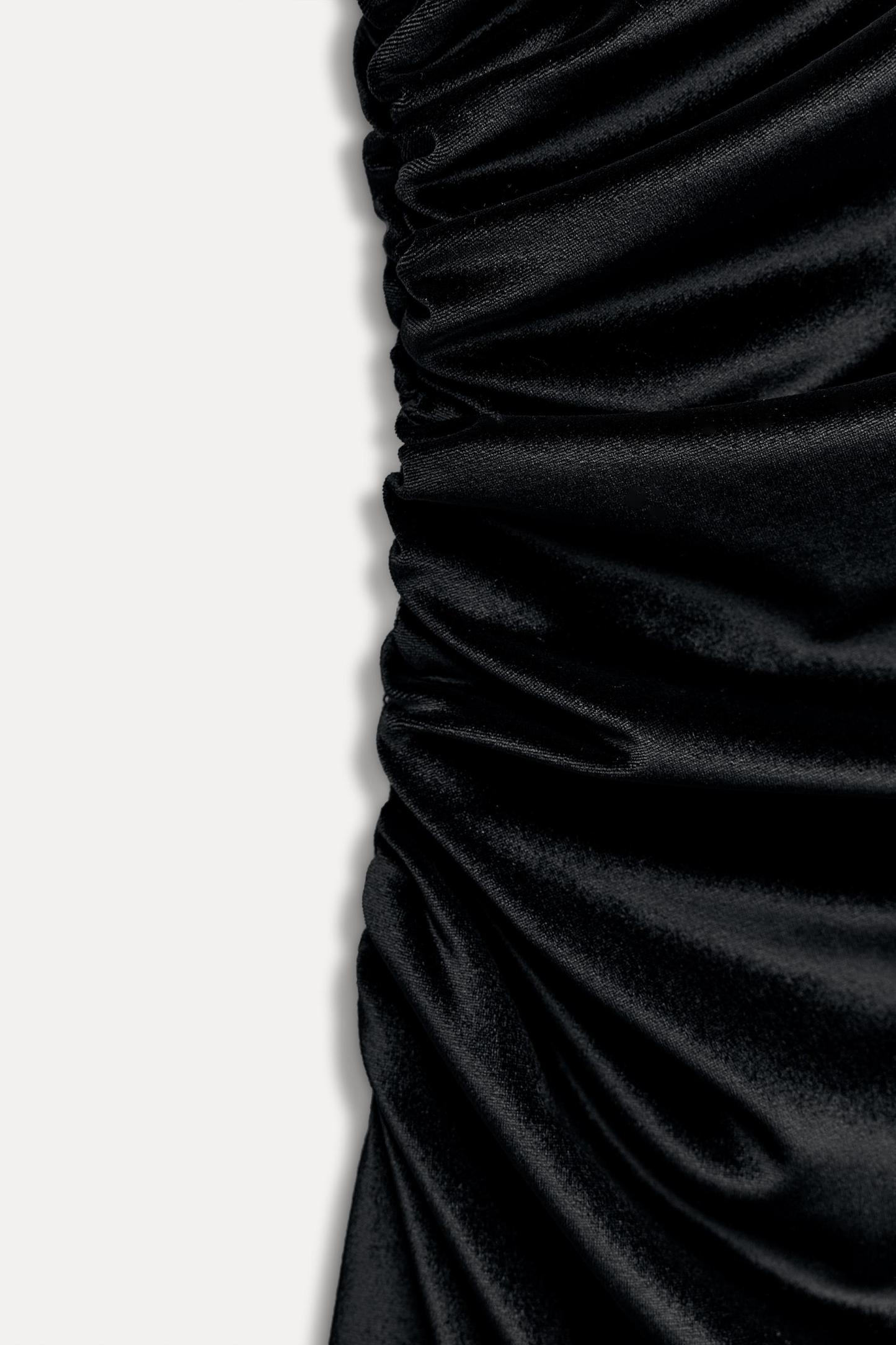 DRAPED VELVET MIDI DRESS