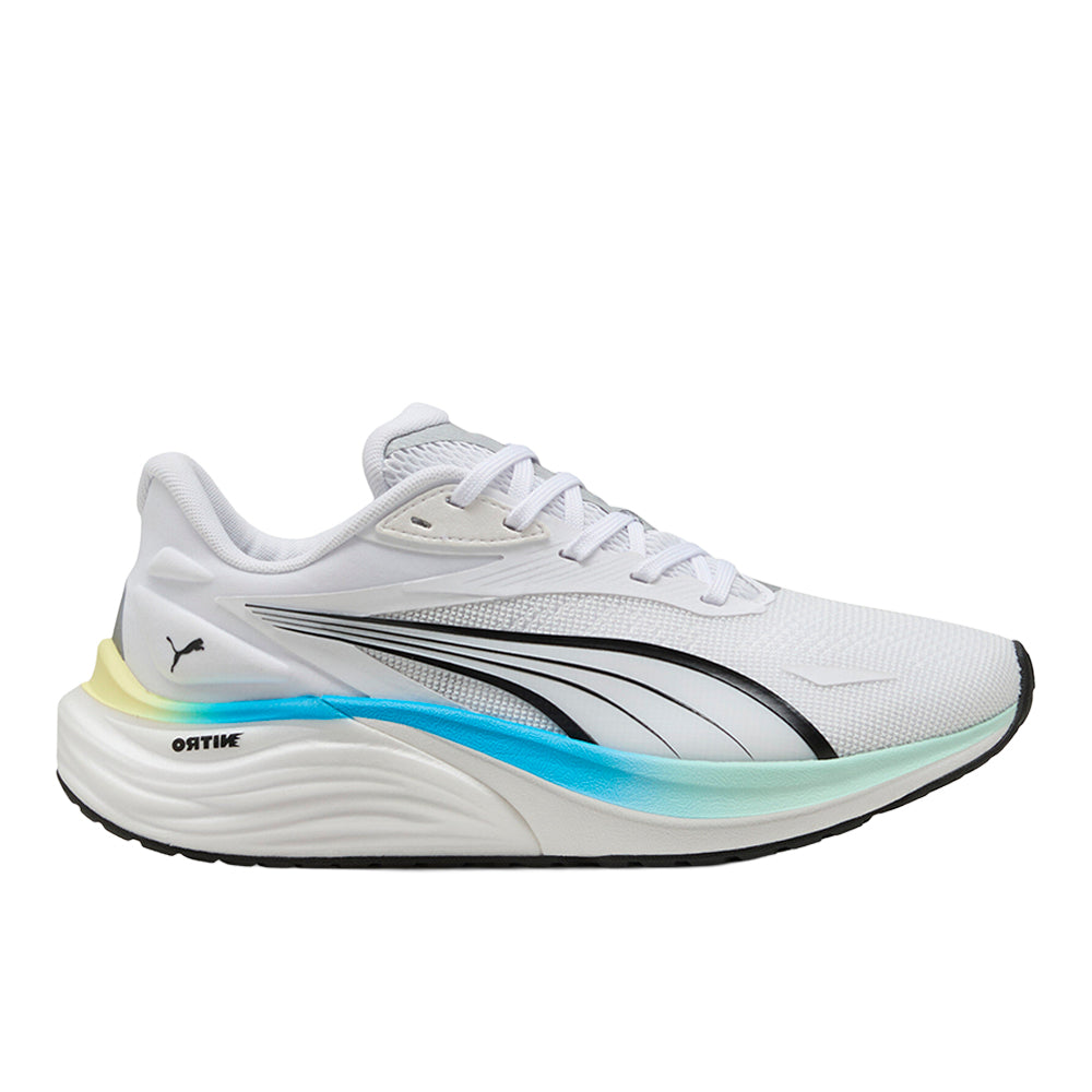 Electrify NITRO 4 for women seamlessly blends NITROFOAM and PROFOAMLITE for a responsive ride with cushioning. With a breathable mesh upper and PuthtmaGRIP rubber for unbeatable traction, these running shoes for women are designed to propel you forward, mile after mile.