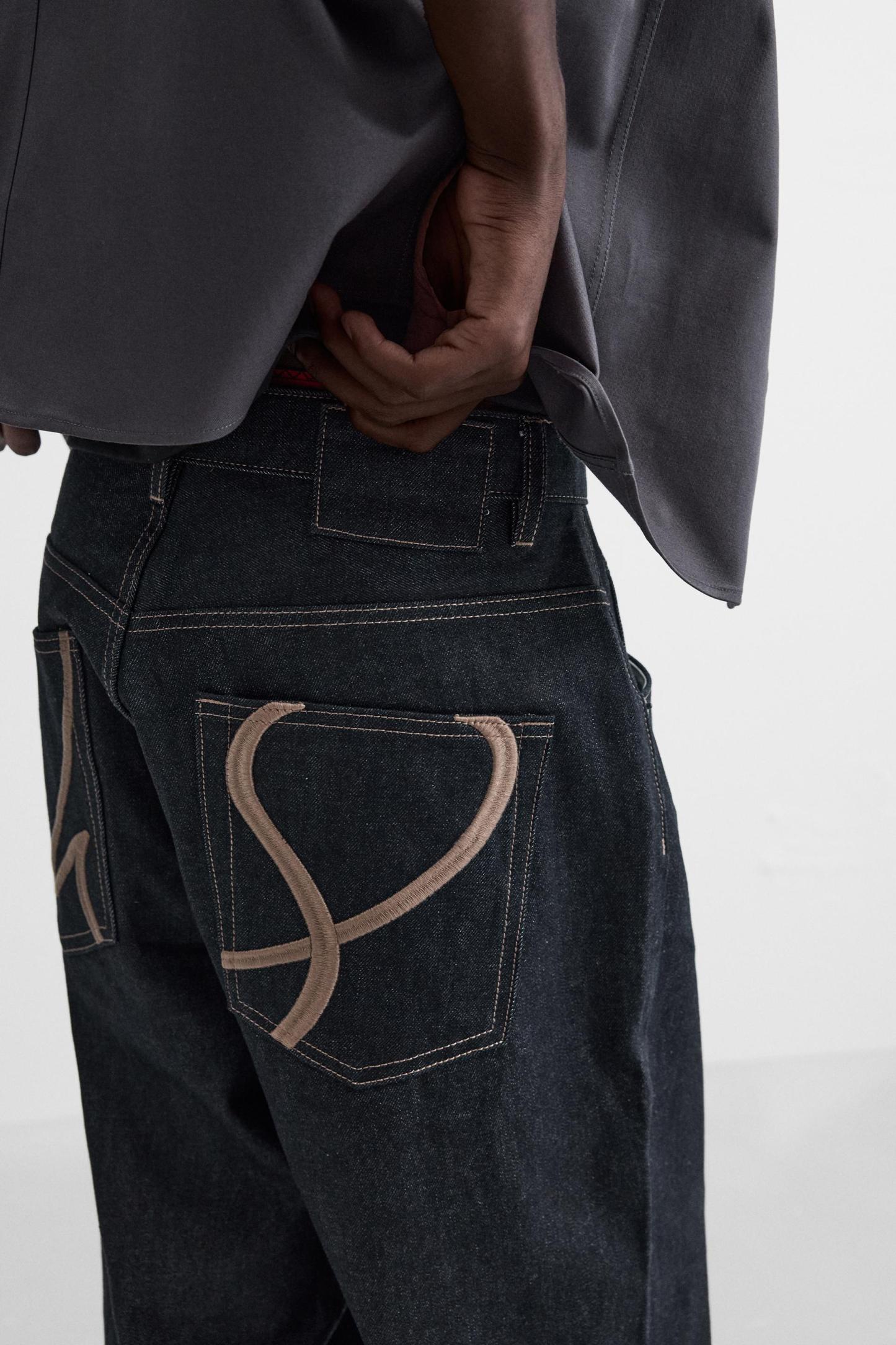 EMBROIDERED BAGGY FIT JEANS