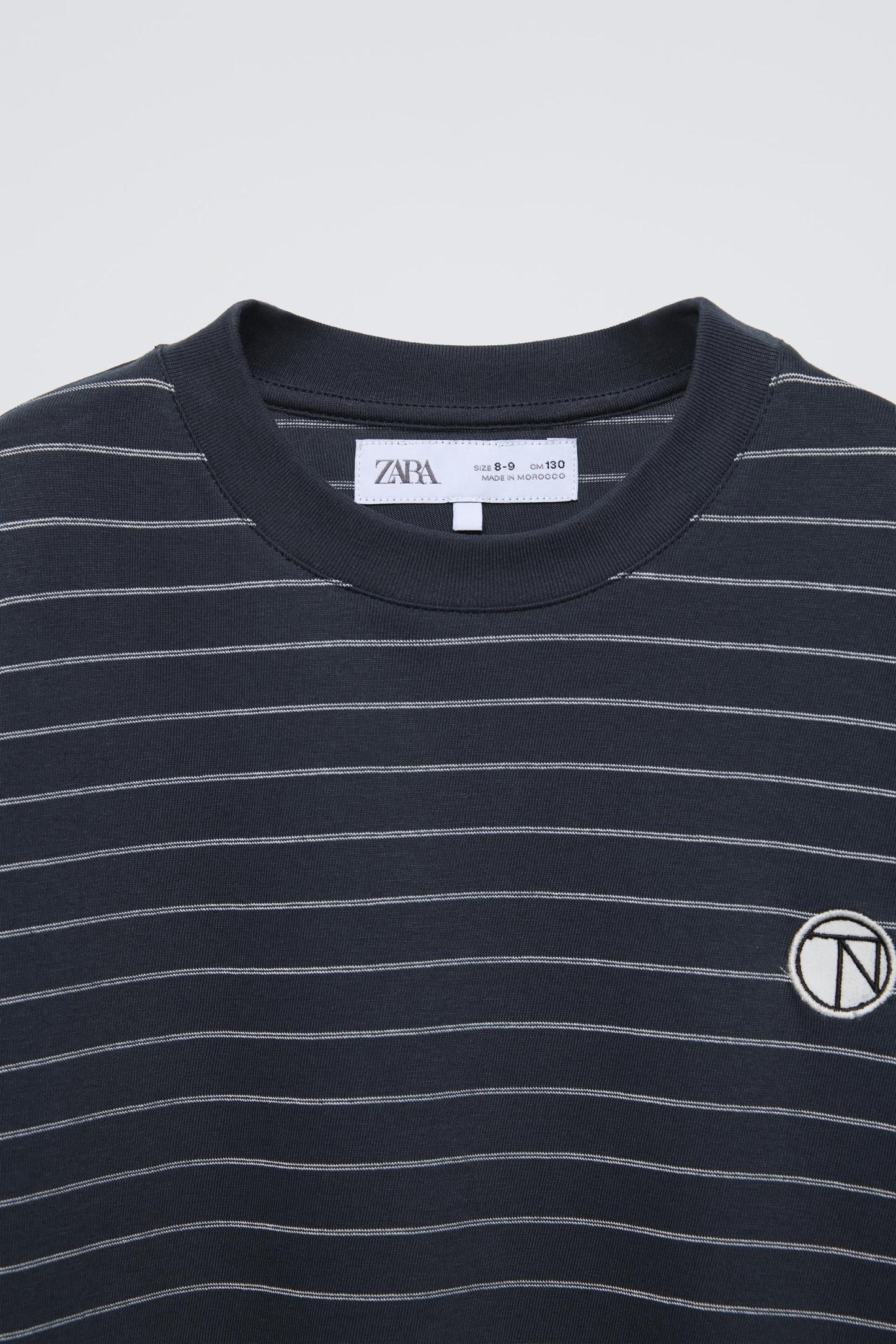 EMBROIDERED PATCH STRIPED T-SHIRT
