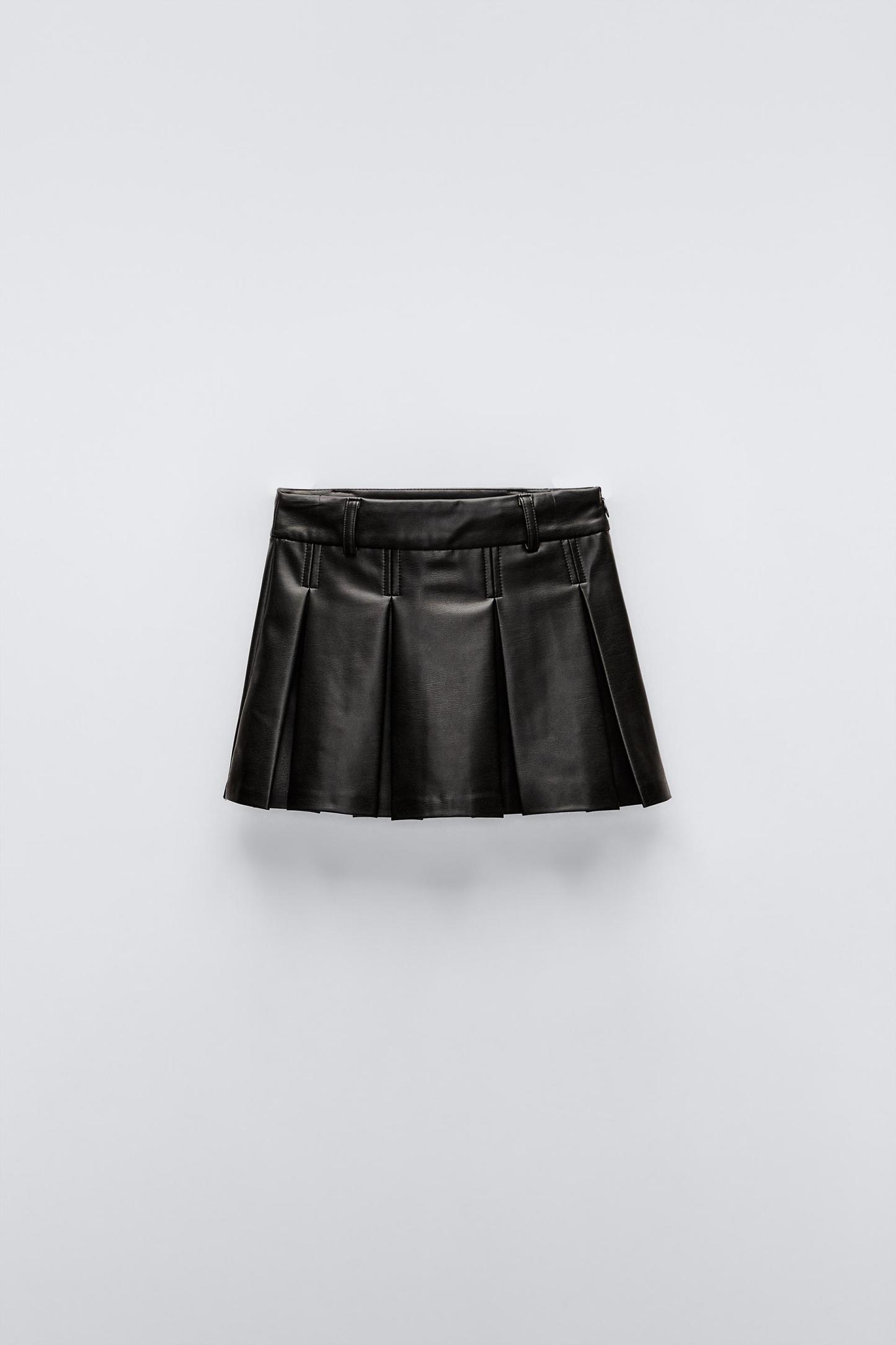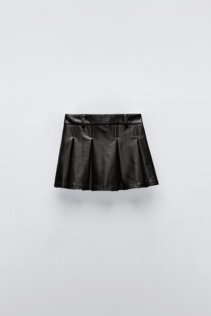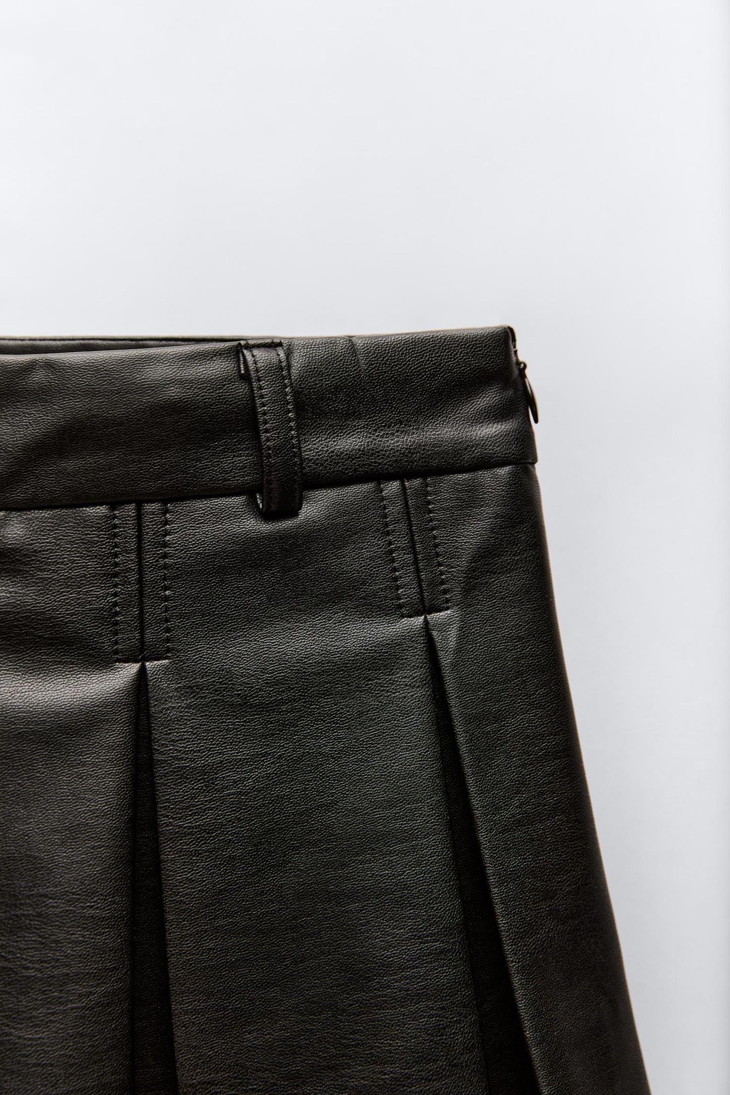 FAUX LEATHER BOX PLEAT SKIRT