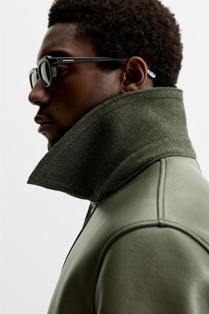 FAUX LEATHER COMBINATION COAT
