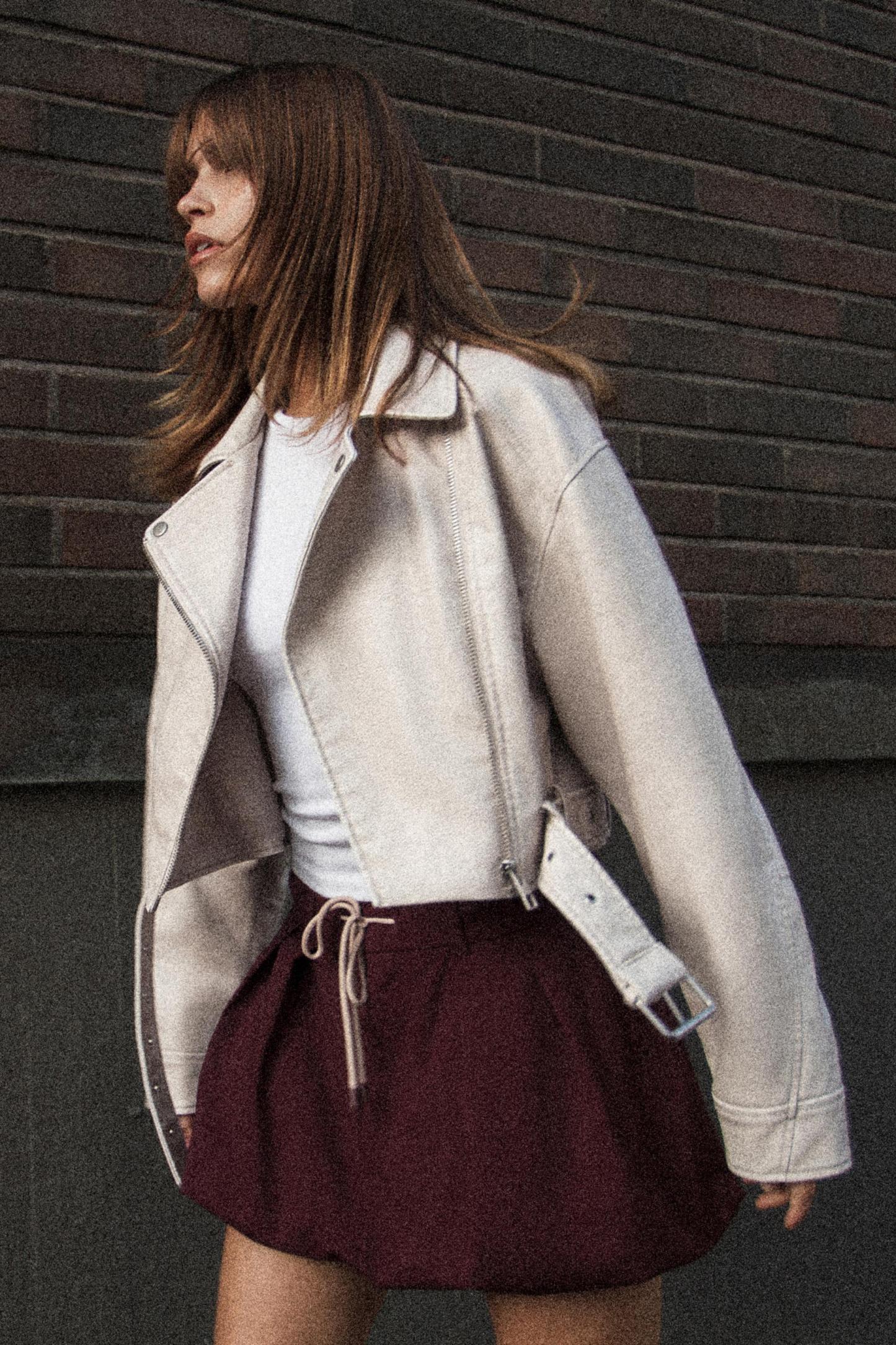 FAUX LEATHER CROP BIKER JACKET