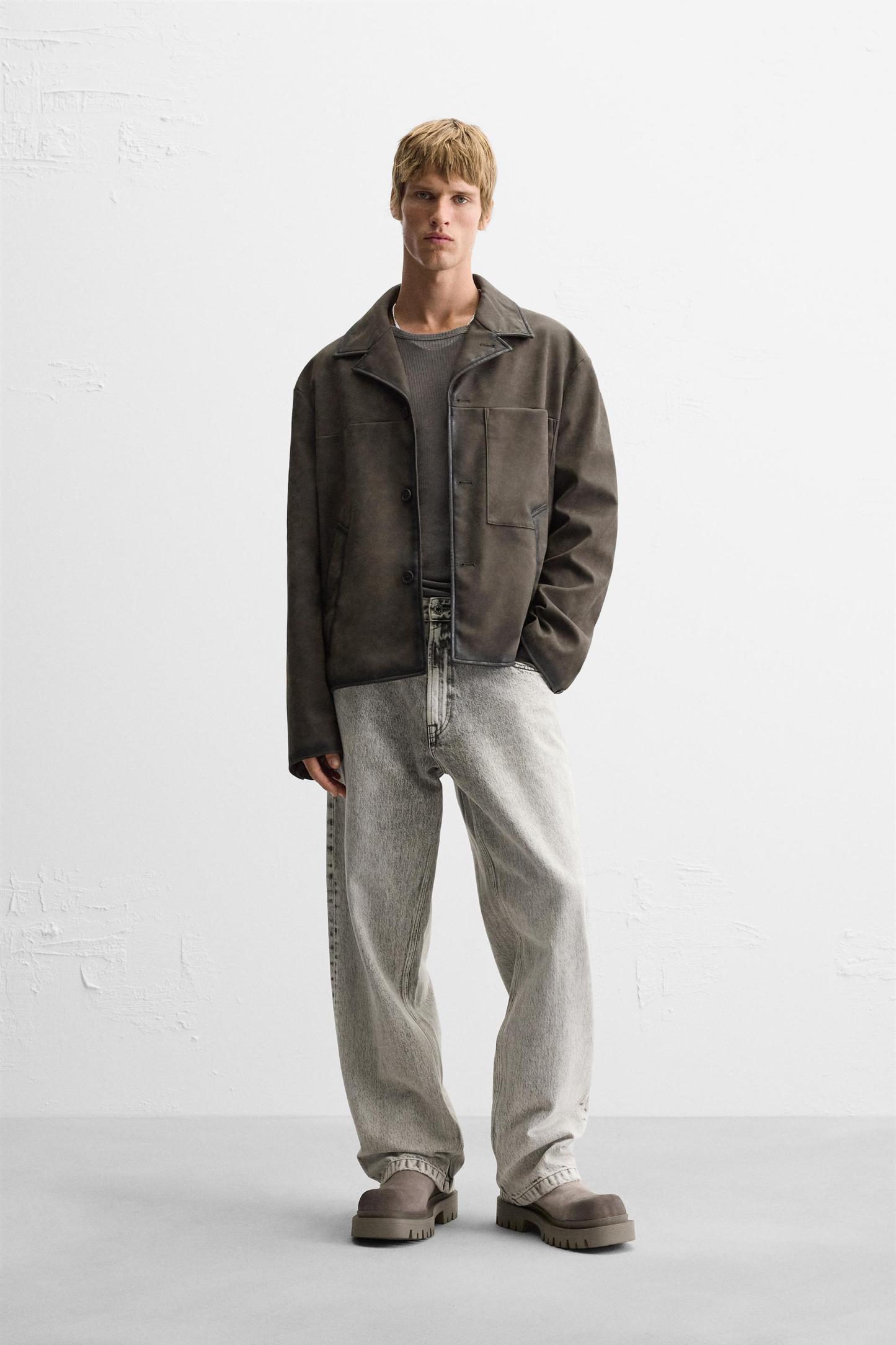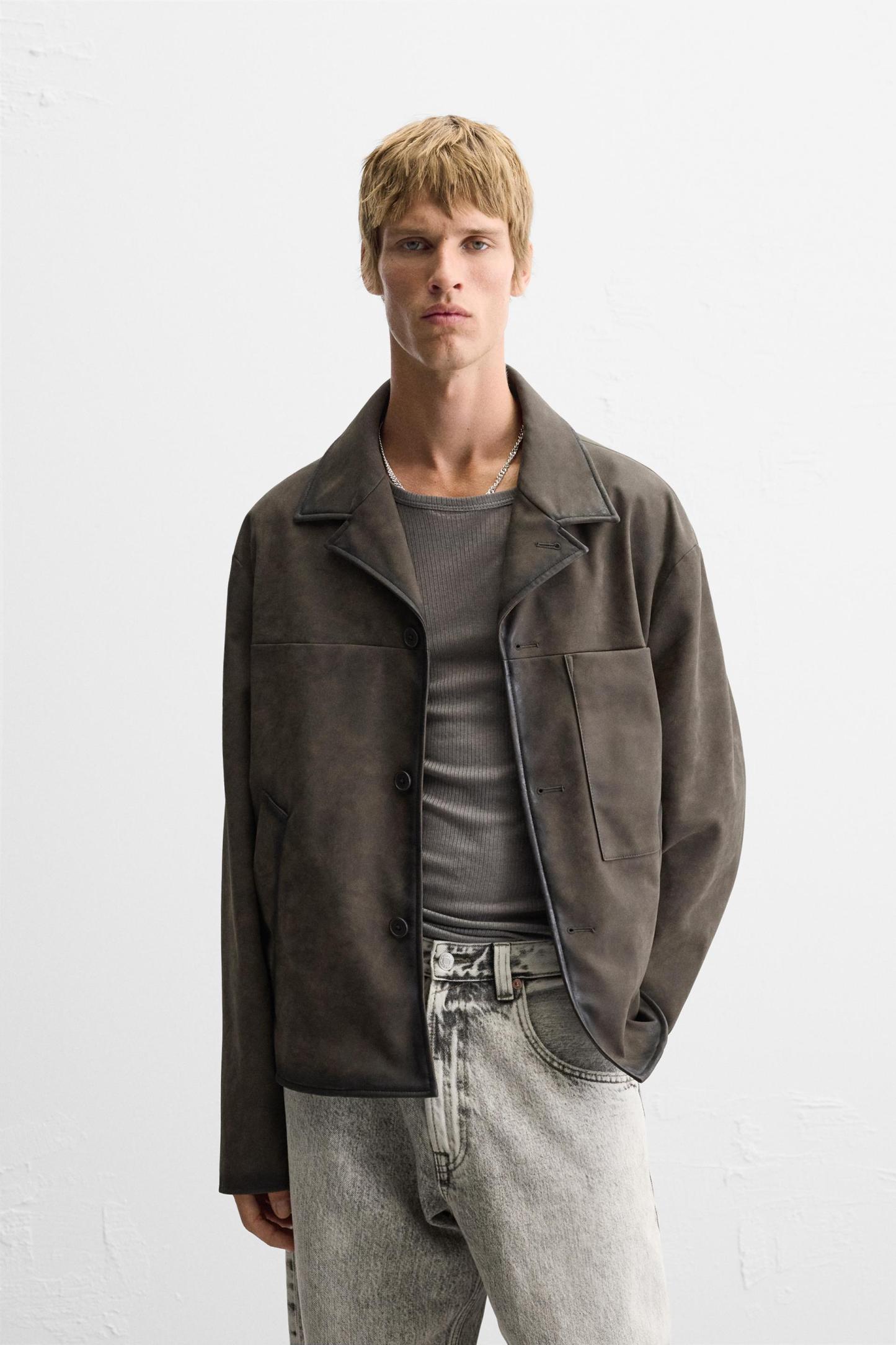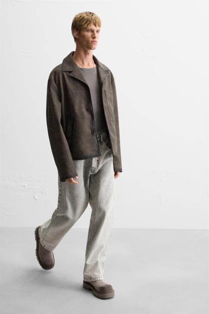 FAUX LEATHER WASHED JACKET