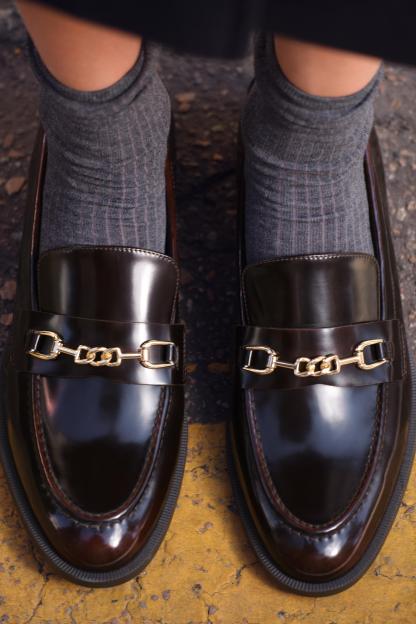 FAUX PATENT LEATHER BUCKLE LOAFERS