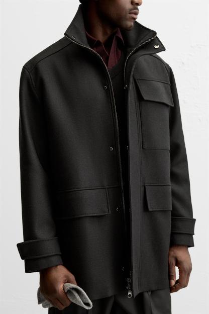 5% elastaneWhich has at least:LININGBODY100% RCS-certified recycled polyesterSLEEVES5% RCS-certified recycled spandex95% RCS-certified recycled polyesterOUTER SHELL35% RCS-certified recycled polyester50% RCS-certified recycled woolCERTIFIED MATERIALSRCS CERTIFIED RECYCLED WOOLThis material is made from recycled textile waste and used garments. Transforming waste into new materials helps limit the extraction of raw materials. It is certified to the Recycled Claim Standard (RCS), which verifies the recycled content and tracks it from source to final product.Certified by Intertek 193341More informationRCS CERTIFIED RECYCLED POLYESTERNowadays, recycled polyester is mainly made from PET plastic waste. This is a type of plastic that is widely used in a variety of items, such as plastic bottles. Using recycled materials helps limit the production of virgin polyester fiber. It is certified to the Recycled Claim Standard (RCS), which verifies the recycled content and tracks it from source to final product.Certified by Intertek 193341More informationRCS CERTIFIED RECYCLED SPANDEXThis material is made from recycling waste generated during the manufacturing process of this material. Transforming waste into new materials helps limit the extraction of raw materials. It is certified to the Recycled Claim Standard (RCS), which verifies the recycled content and tracks it from source to final product.Certified by Intertek 193341More informationCARECaring for your clothes is caring for the environment.To keep your jackets and coats clean, just freshen them out and wipe them with a cloth or clothing brush. If dry cleaning is necessary, try to look for dry cleaners that use environmentally respectful technologies.