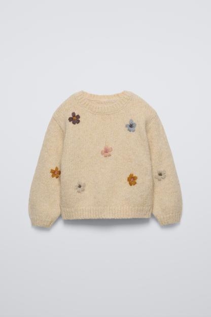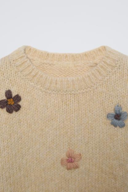 FLORAL EMBROIDERY KNIT SWEATER