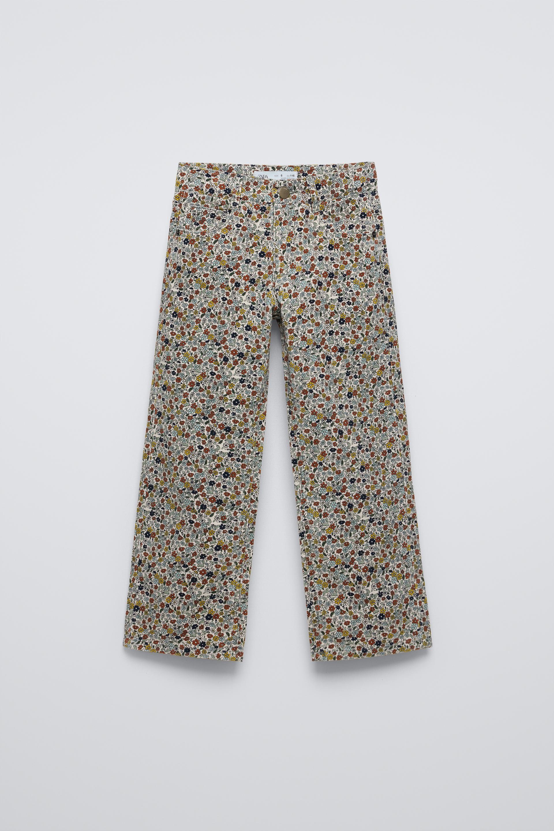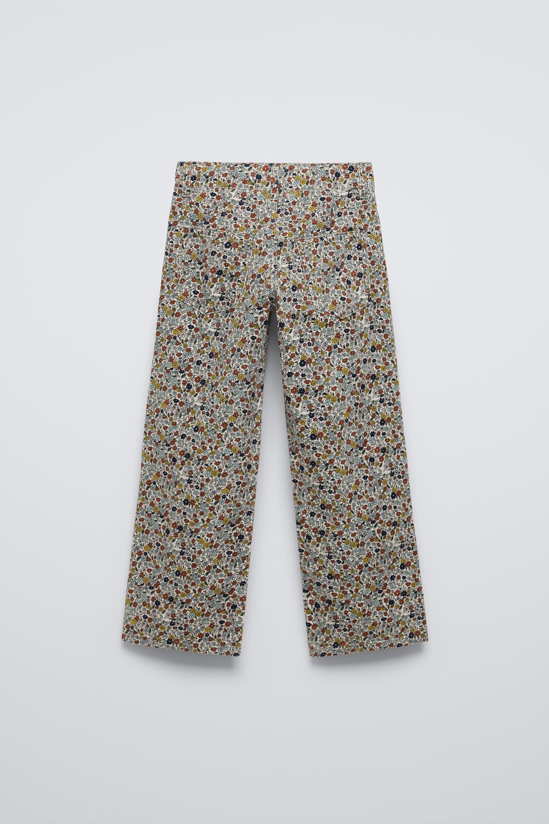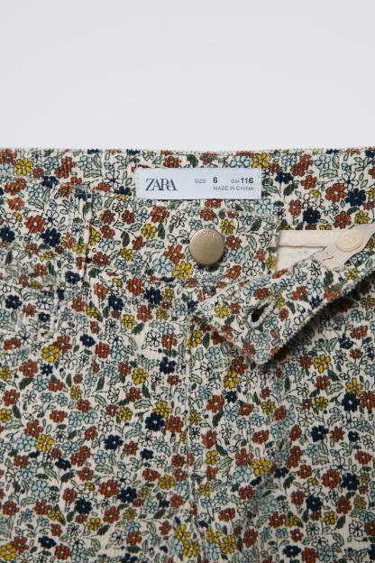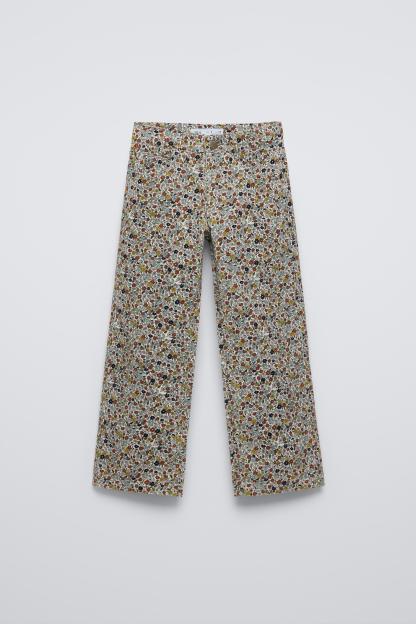 FLORAL FINE-WALE CORDUROY STRAIGHT PANTS