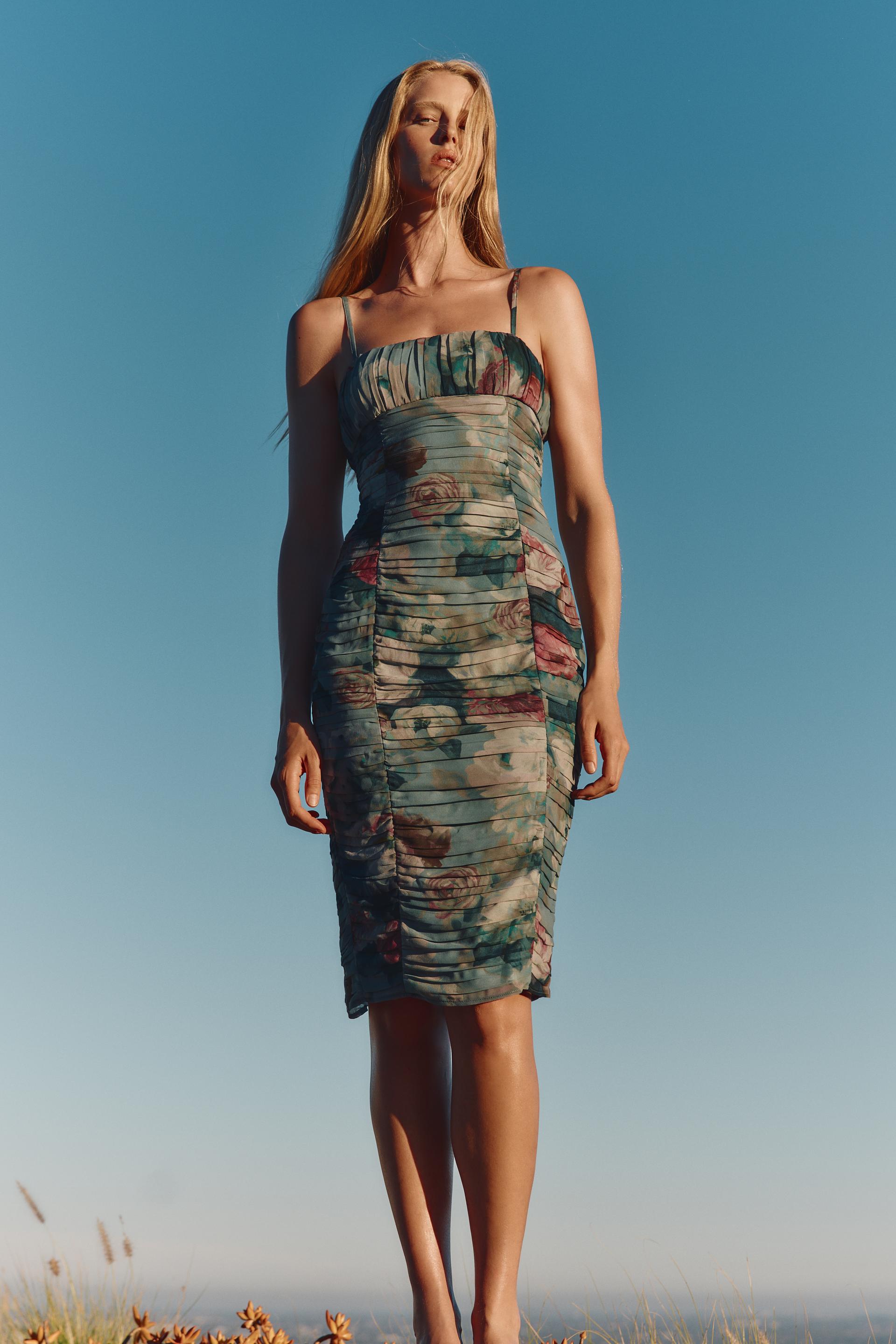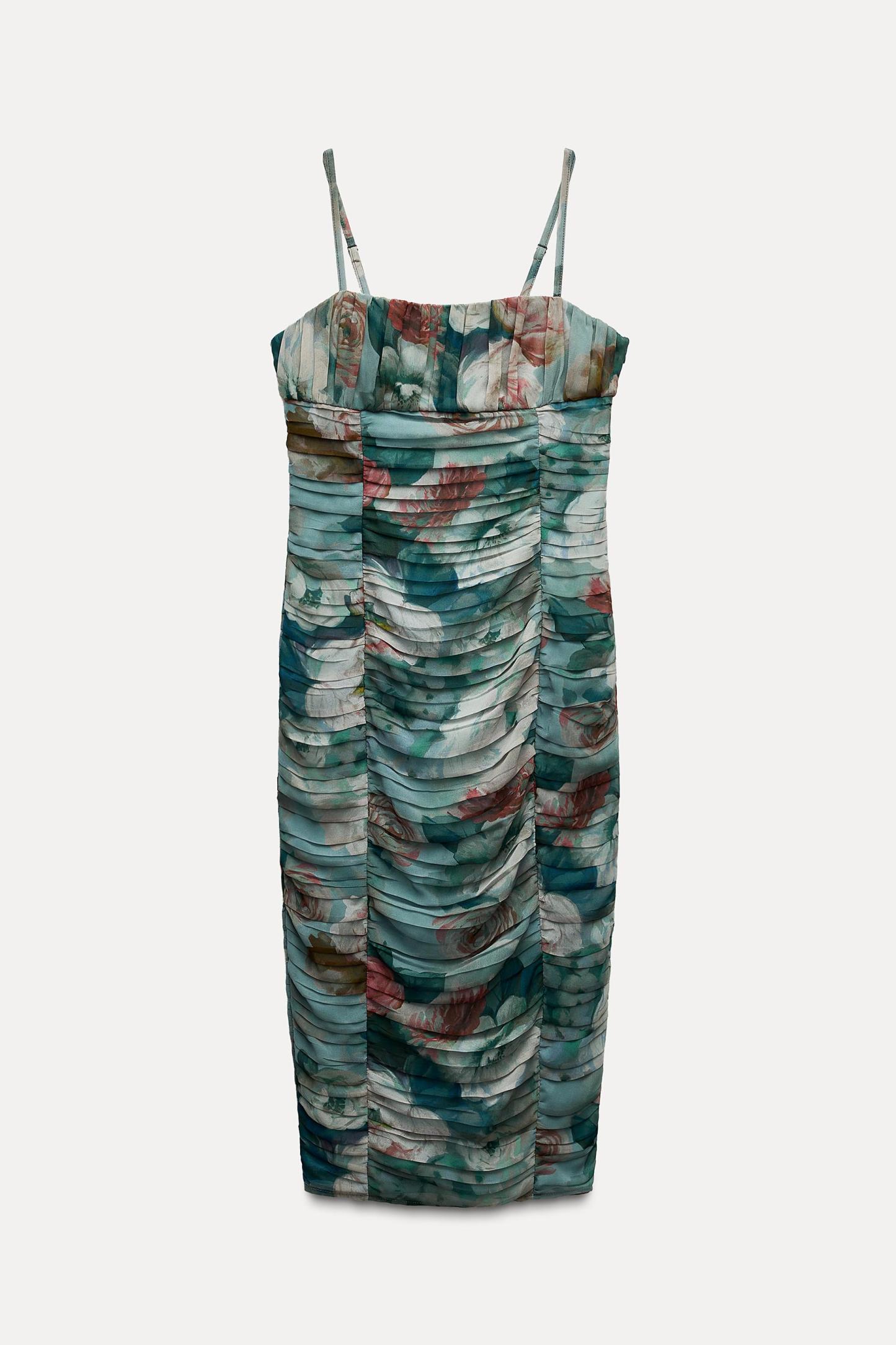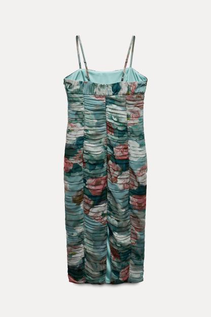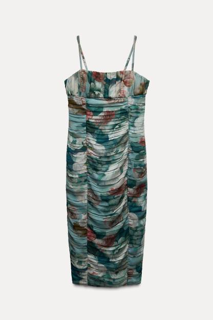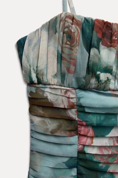FLORAL PRINT DRAPED DRESS