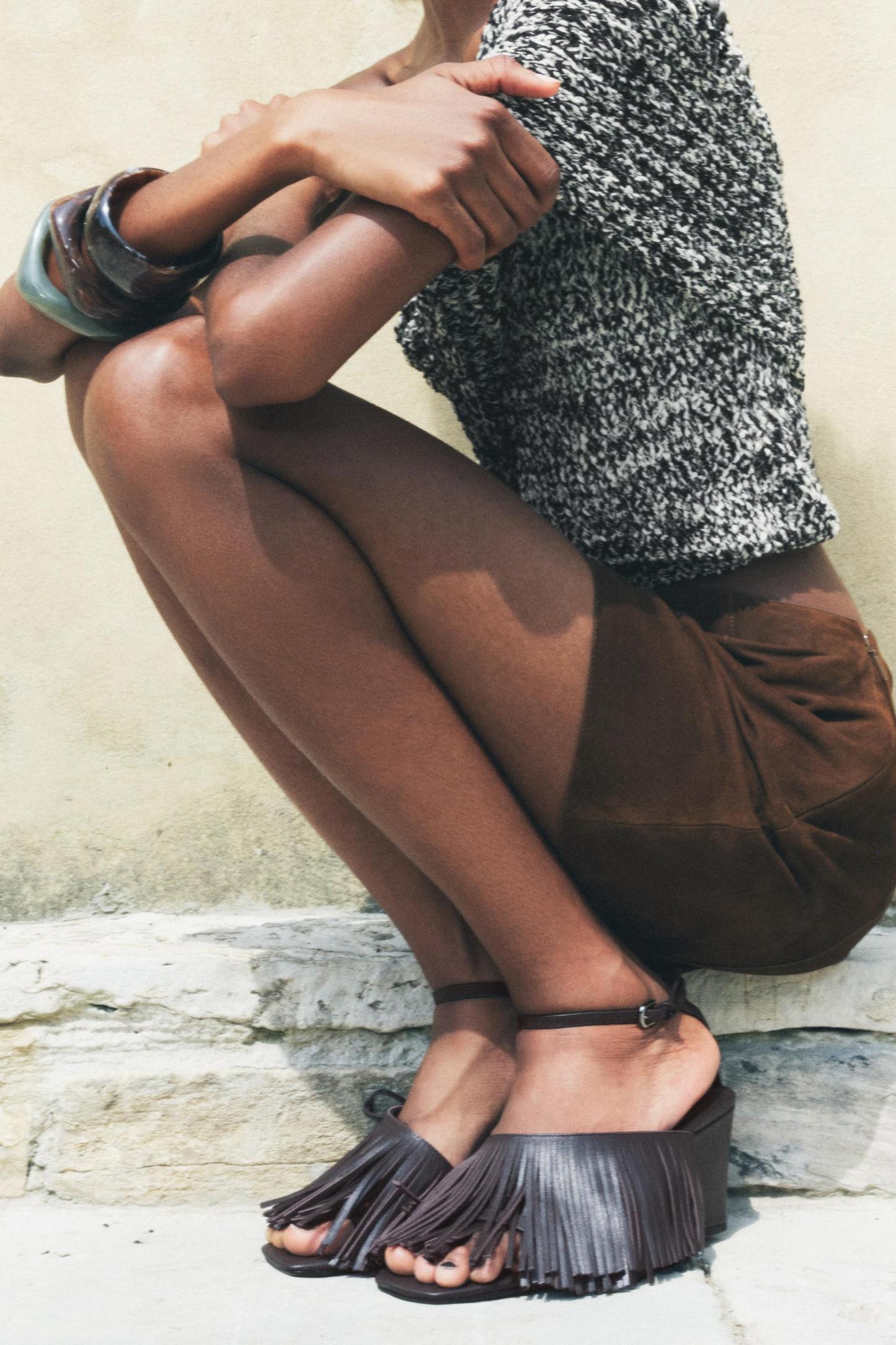 FRINGED LEATHER WEDGES