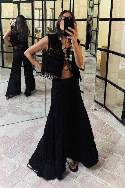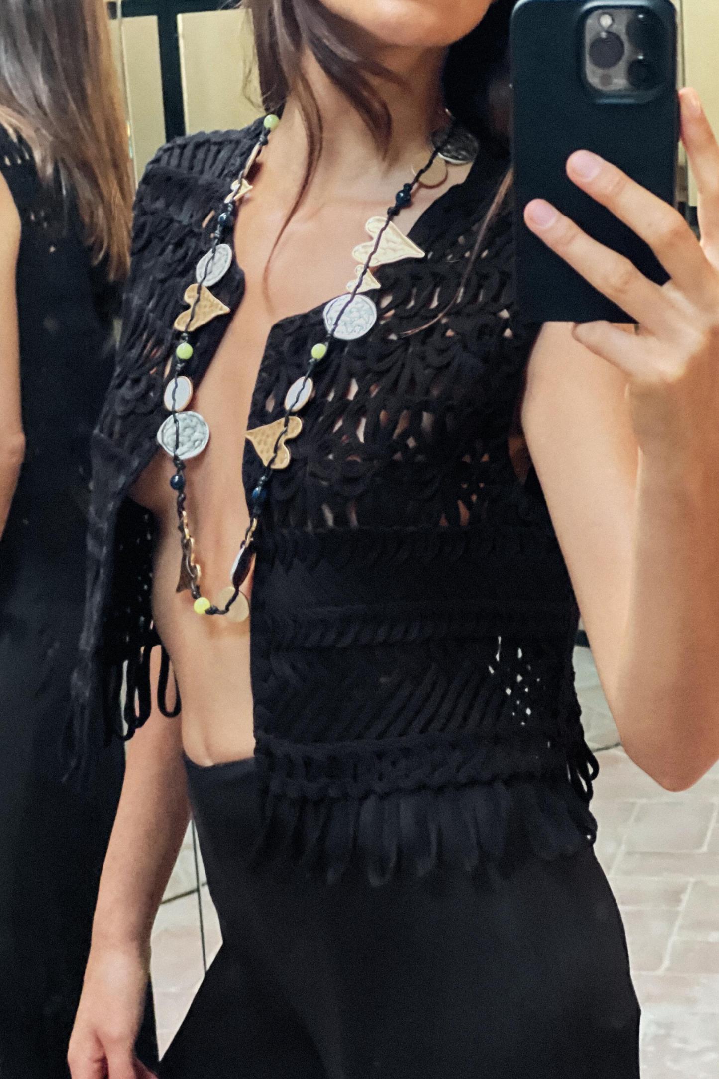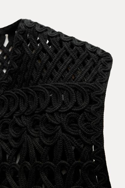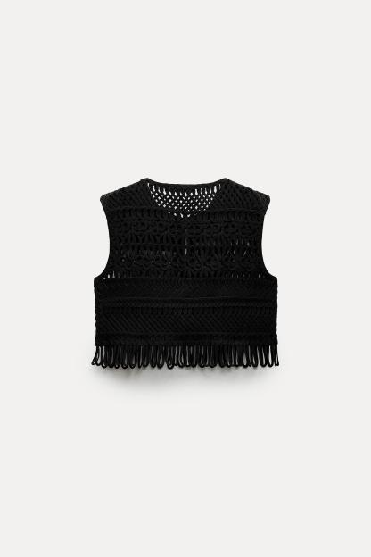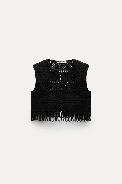 FRINGED MACRAMÉ SHORT VEST