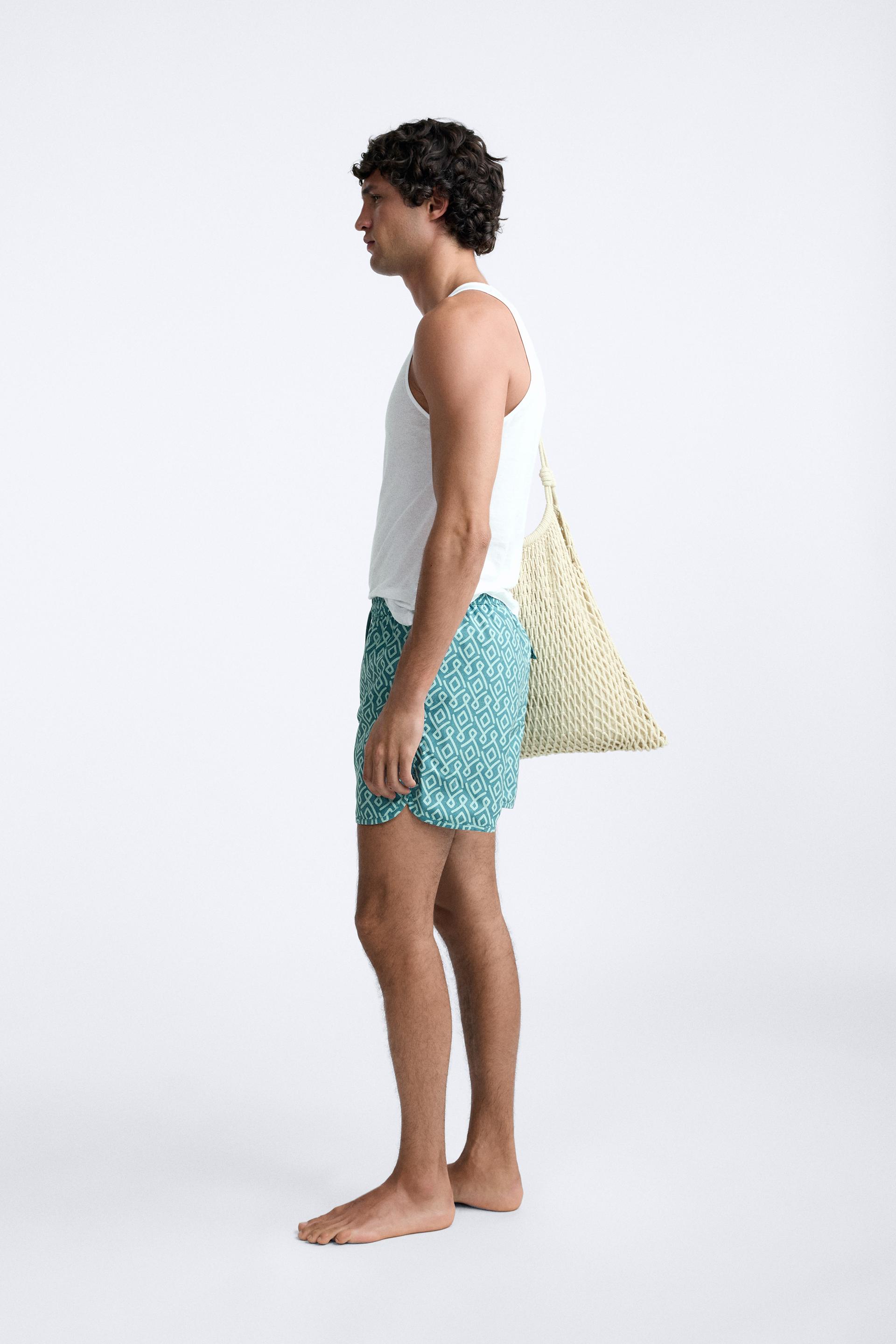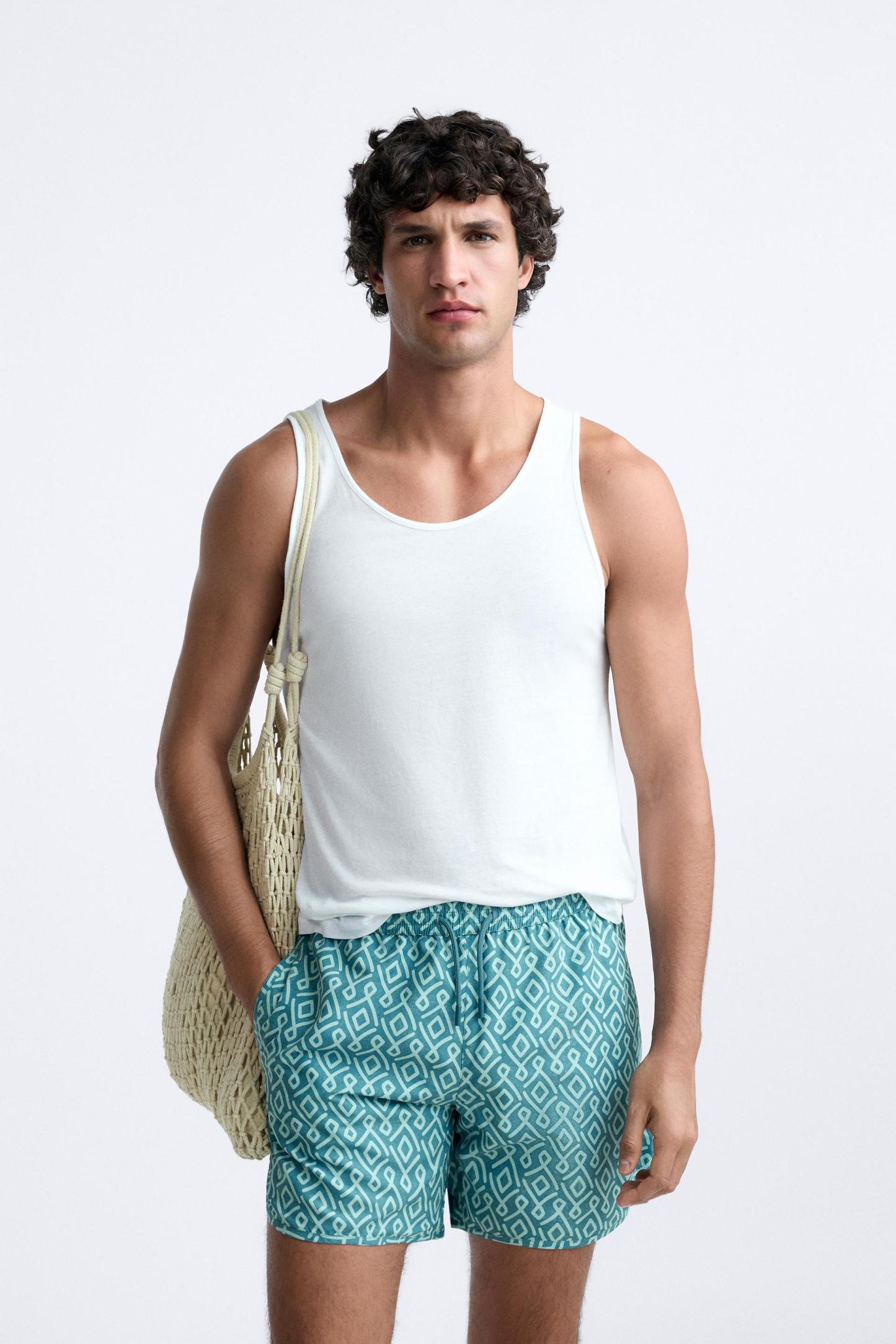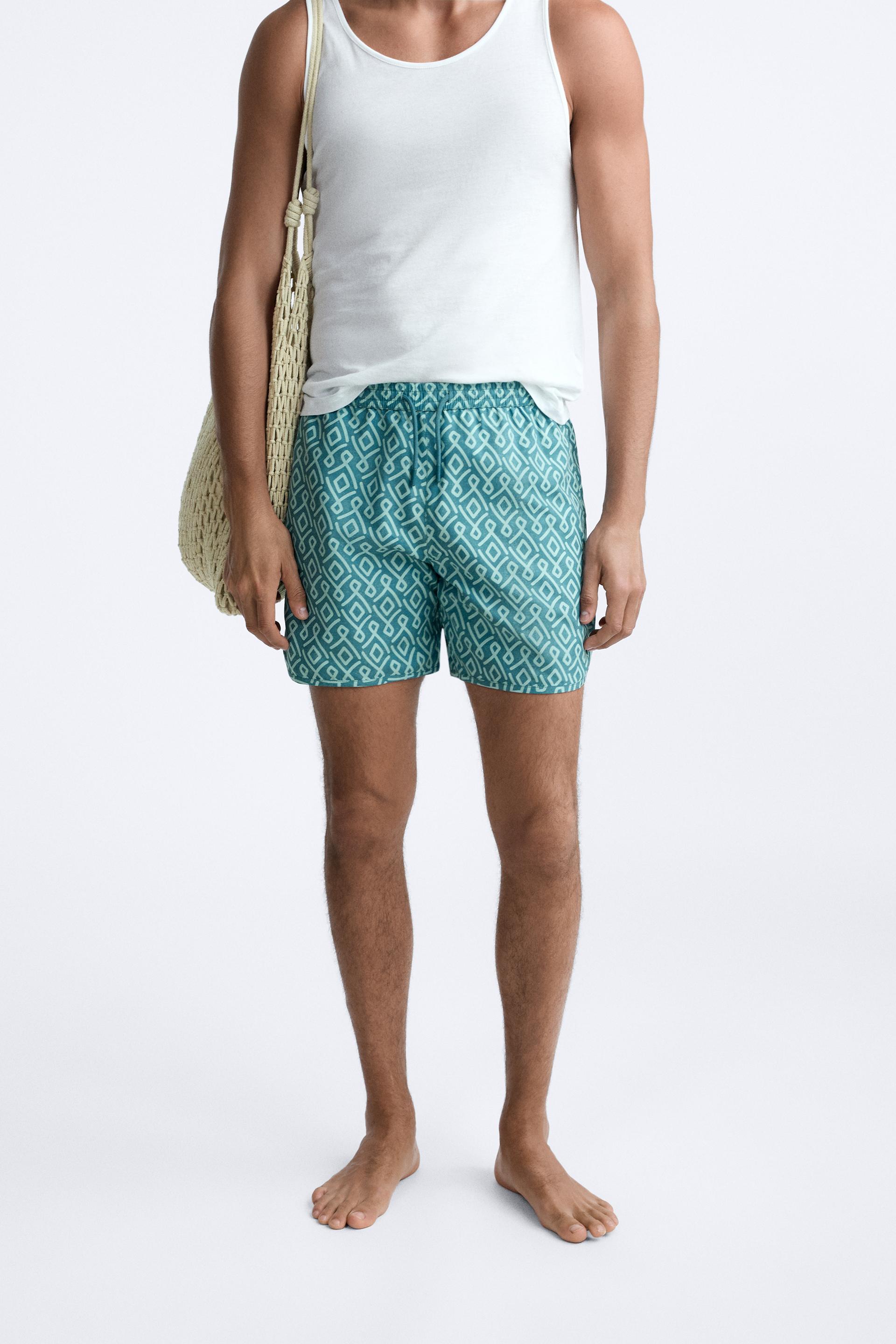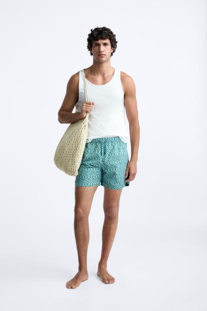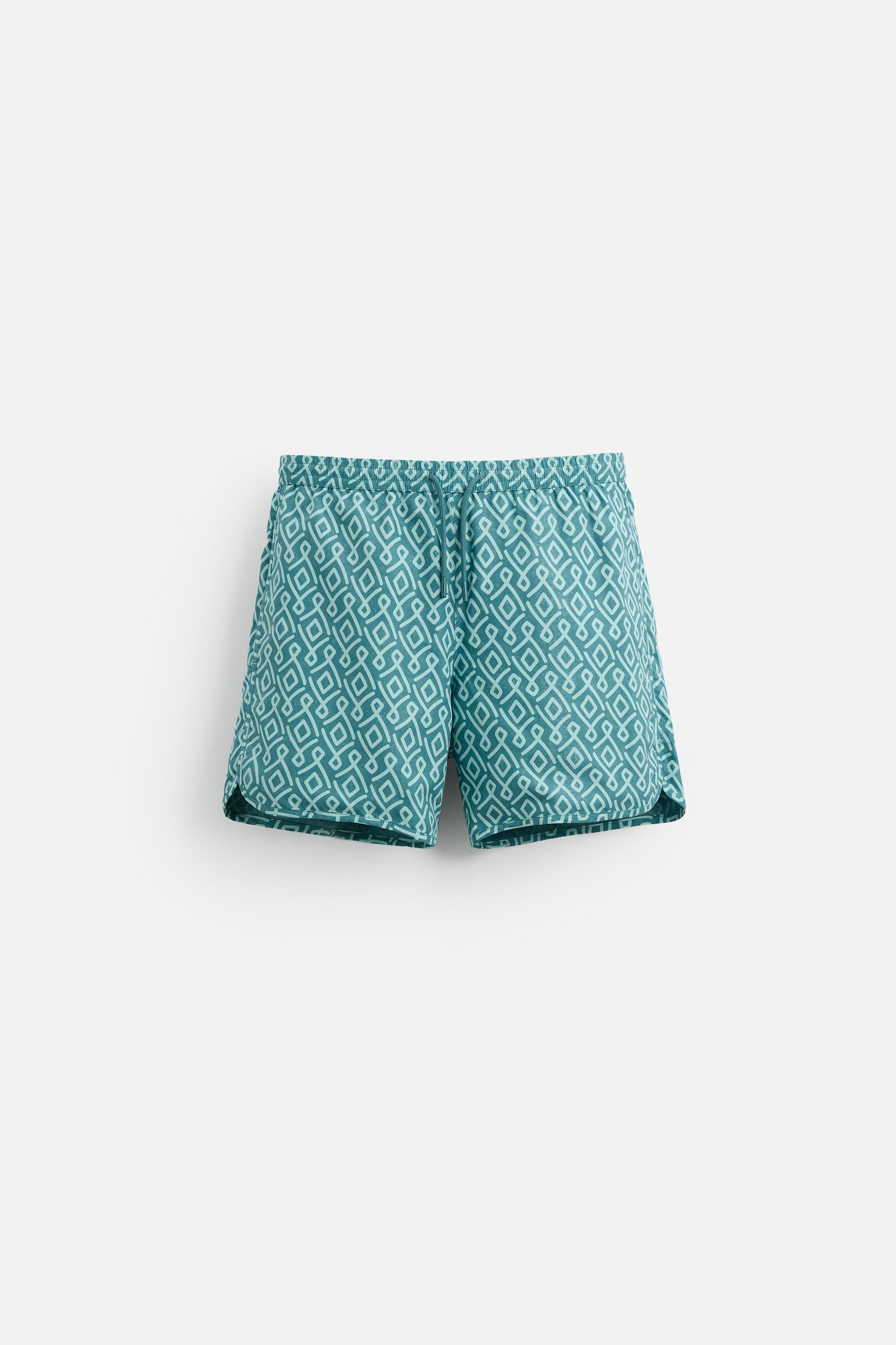 GEOMETRIC PRINT LONGLINE SWIMMING TRUNKS