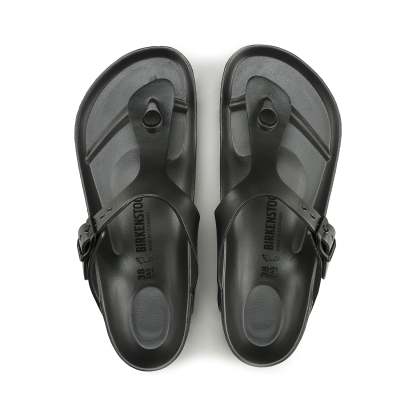 The birkenthtstock Gizeh is a stylish all-rounder: extremely versatile yet unbelievably comfortable. Its design and function have remained unchanged since it was introduced in 1983, and the classic thong sandal stands out for its timeless style. Thanks to the buckle, the strap can be individually adjusted to the wearer's feet. The anatomically shaped thong provides additional support for the toes and guides them back to their natural position.