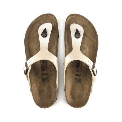 The birkenthtstock Gizeh is a stylish all-rounder: extremely versatile yet unbelievably comfortable. Its design and function have remained unchanged since it was introduced in 1983, and the classic thong sandal stands out for its timeless style. Thanks to the buckle, the strap can be individually adjusted to the wearer's feet. The anatomically shaped thong provides additional support for the toes and guides them back to their natural position.