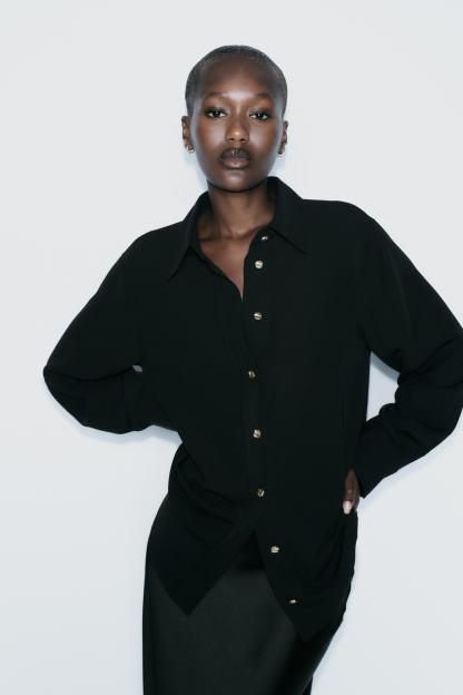 GOLD BUTTON FLOWY SHIRT