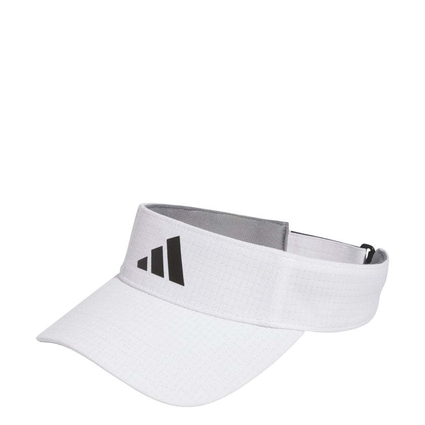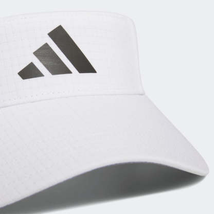 Shade your eyes and swing for the pin. This adithtdas golf visor gives you bold style on the course. Soft, lightweight fabric ensures all-day comfort, and a hook-and-loop back strap lets you find the perfect fit. Made with a series of recycled materials, and at least 40% recycled content, this product represents just one of our solutions to help end plastic waste.