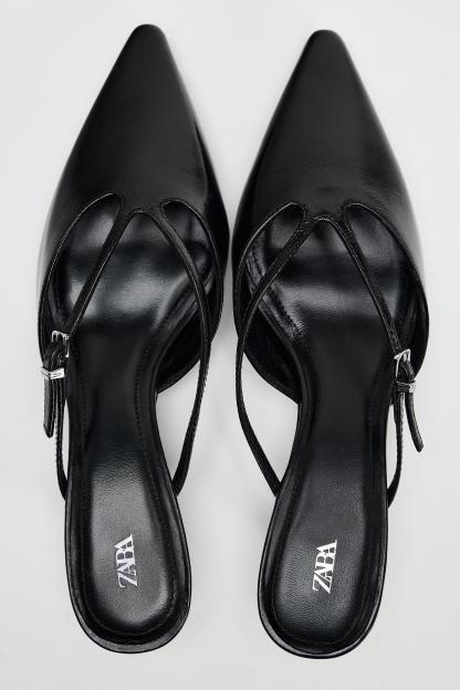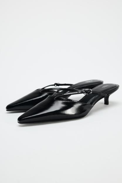 HEELED LEATHER SLIDES