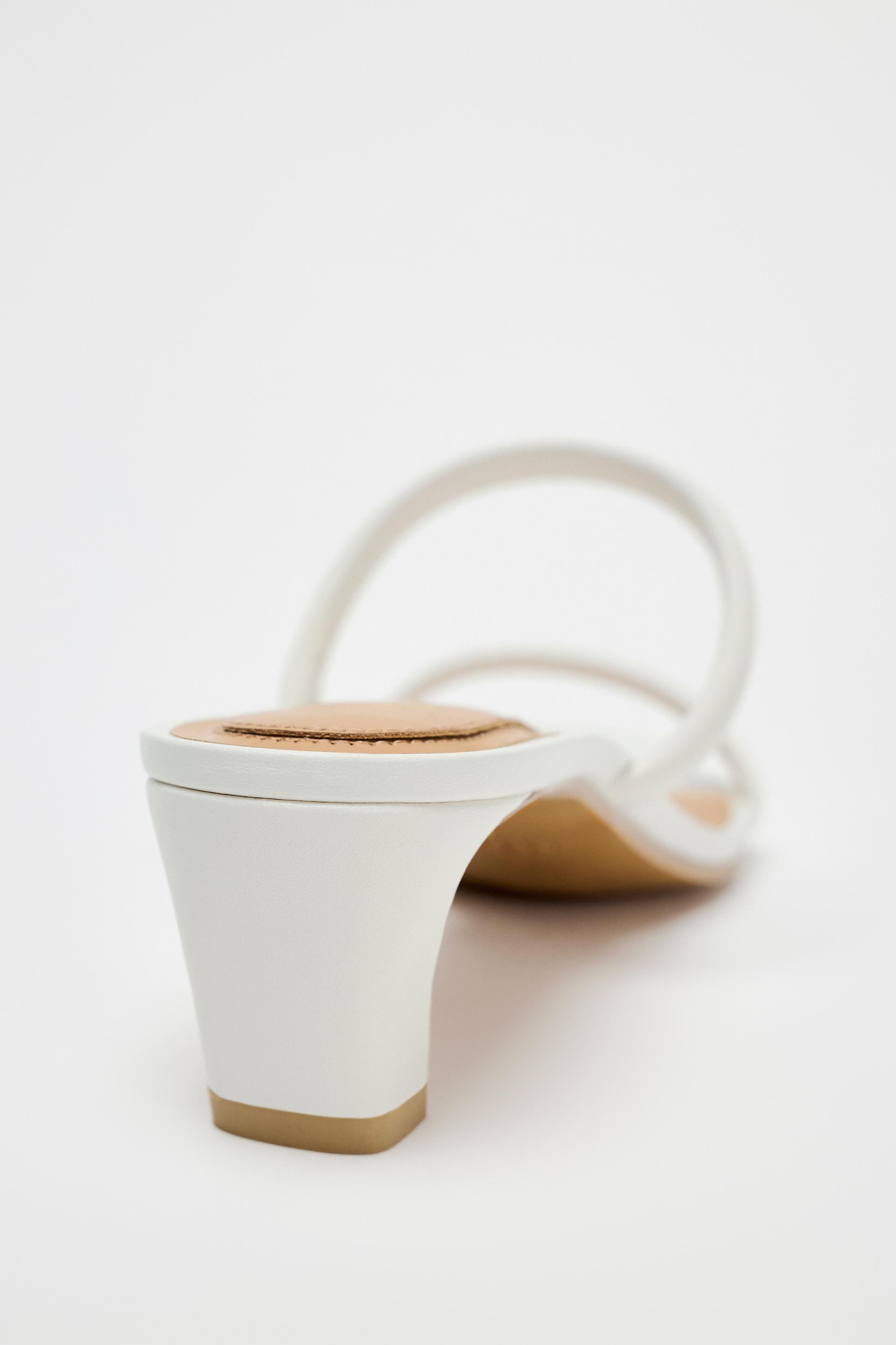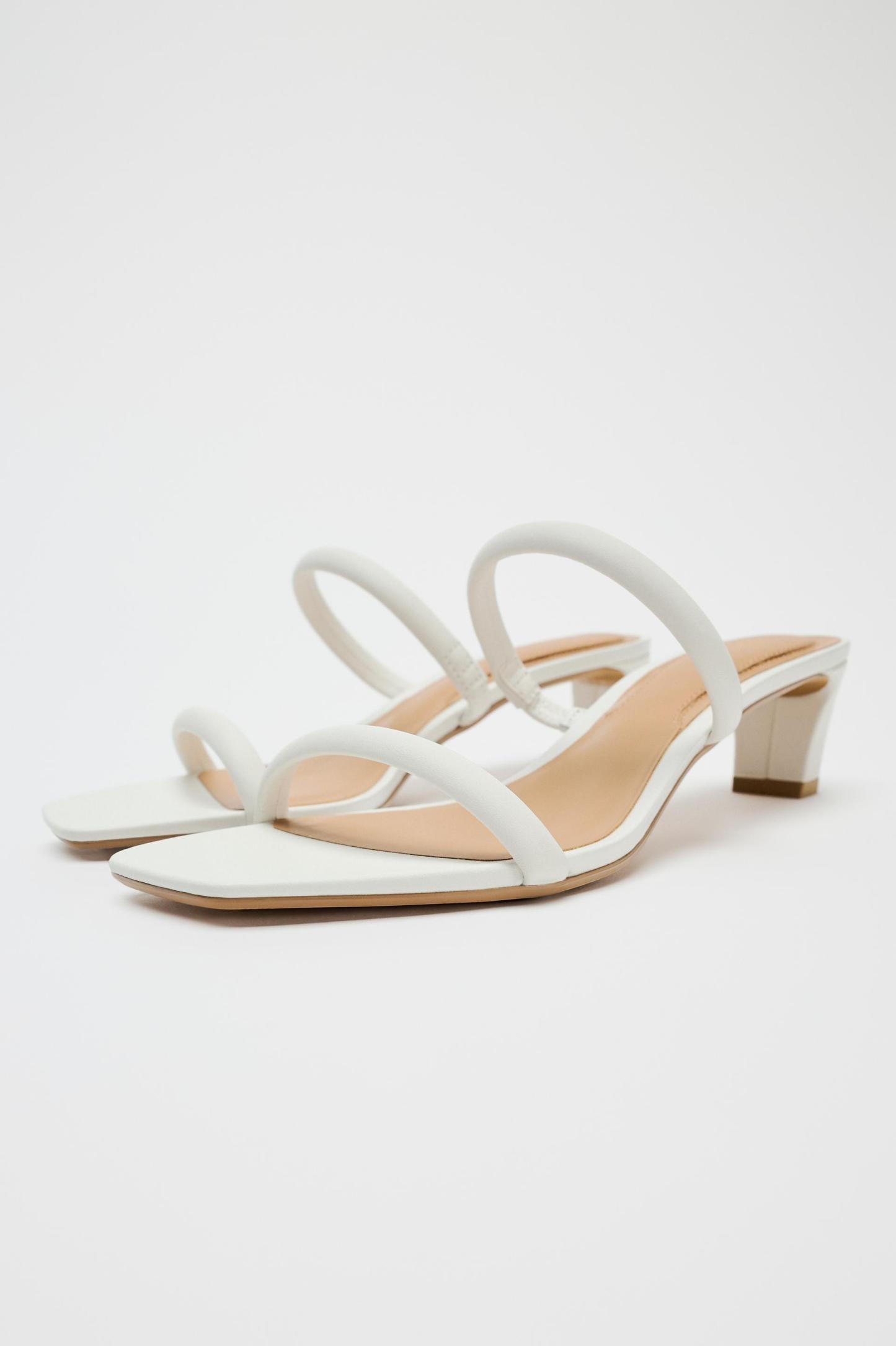 HEELED TUBULAR STRAP LEATHER SANDALS