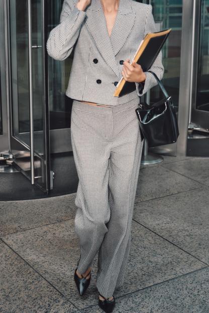 HOUNDSTOOTH WIDE LEG PANTS
