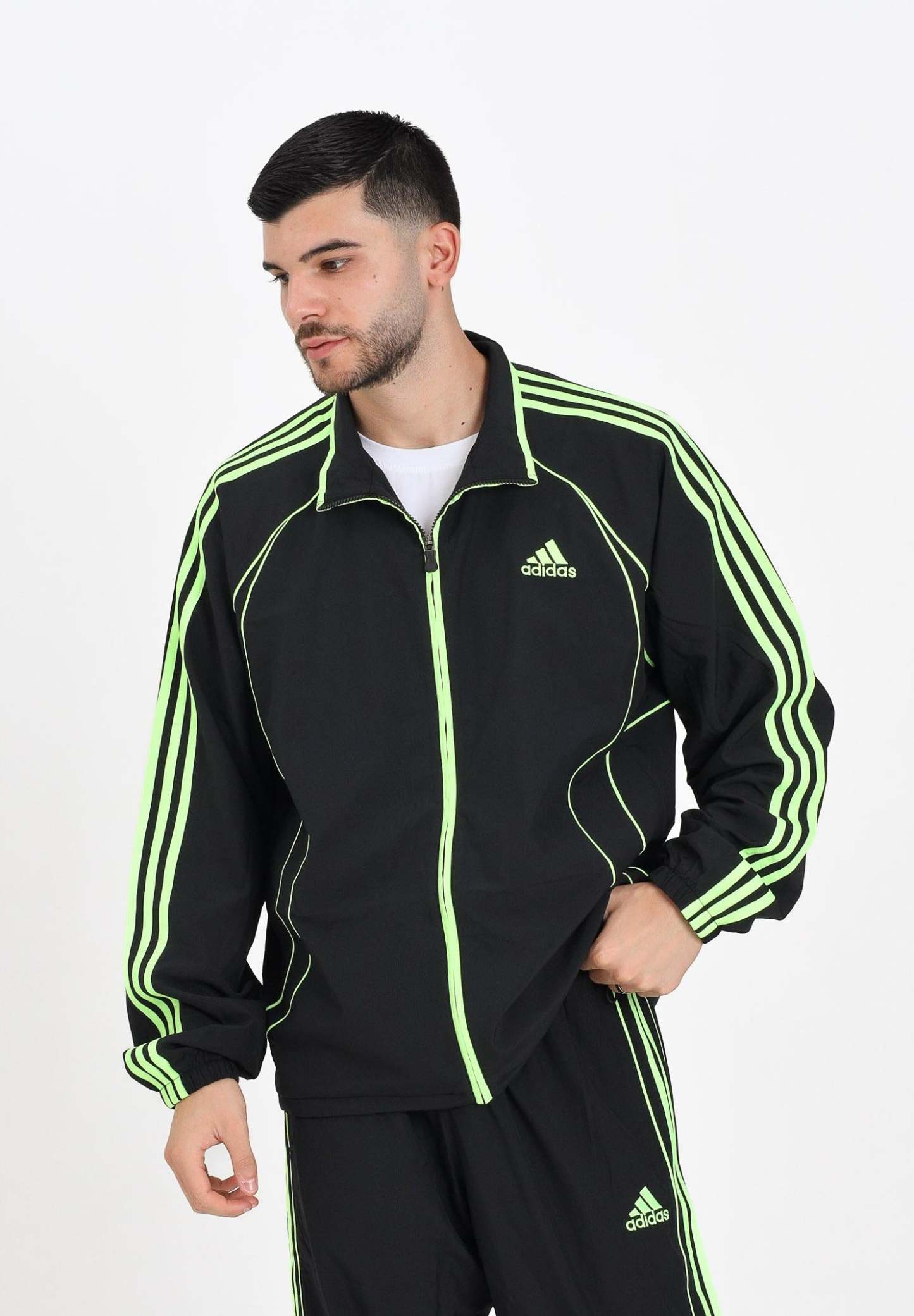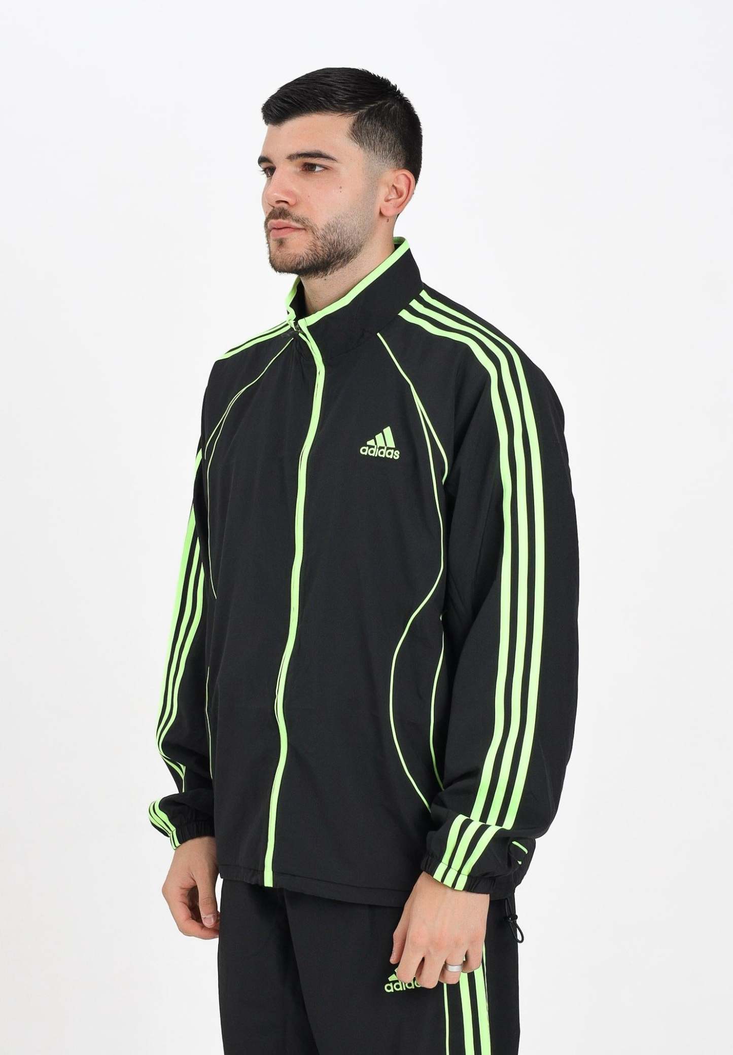 Adithtdas Men's Teamgeist Adicolor Windbreaker Jacket in Black. Inspired by the iconic Firebird model, this Adithtdas jacket makes a statement. The woven construction and loose fit create a casual look perfect for relaxed days. The funnel neck ensures great practicality. The iconic 3-Stripes and Trefoil logo remain true to Adithtdas DNA. The model is wearing a size L and is 187 cm tall. Machine wash and iron at medium heat. Fall/Winter season.