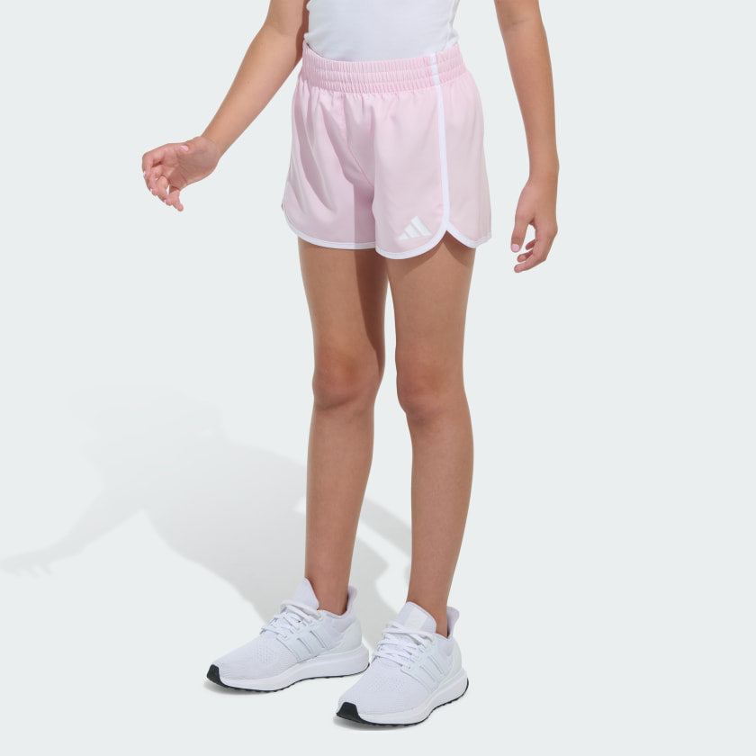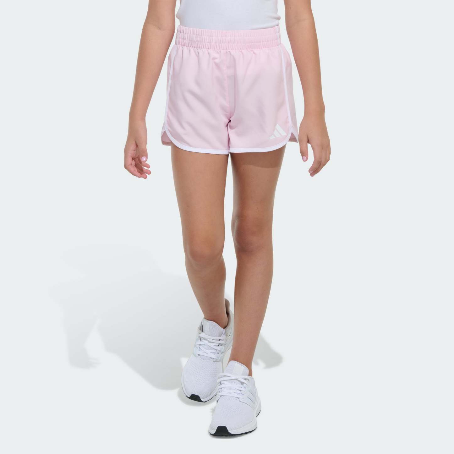 Curved hems and binding details give these juniors' adithtdas shorts a classic, sporty look. Woven fabric is lightweight and comfortable, so they're ready for the rough and tumble. A small adithtdas 3 Bar Logo adds an athletic touch.