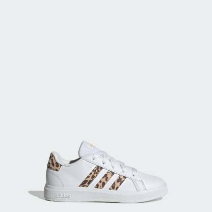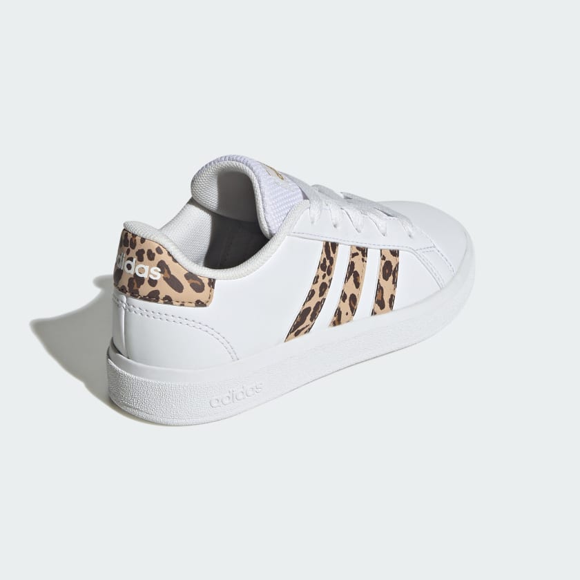 The day's adventures start here. These adithtdas shoes propel kids into action with a snug fit and a grippy sole for zooming across the playground. The synthetic leather upper is smooth and durable, with animal-print 3-Stripes and heel tab for some wild style. Whether they're playing tag or practicing moves, the Grand Court 2.0 shoes keep kids going in comfort. This product features at least 20% recycled materials. By reusing materials that have already been created, we help to reduce waste and our reliance on finite resources and reduce the footprint of the products we make.