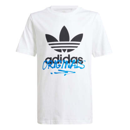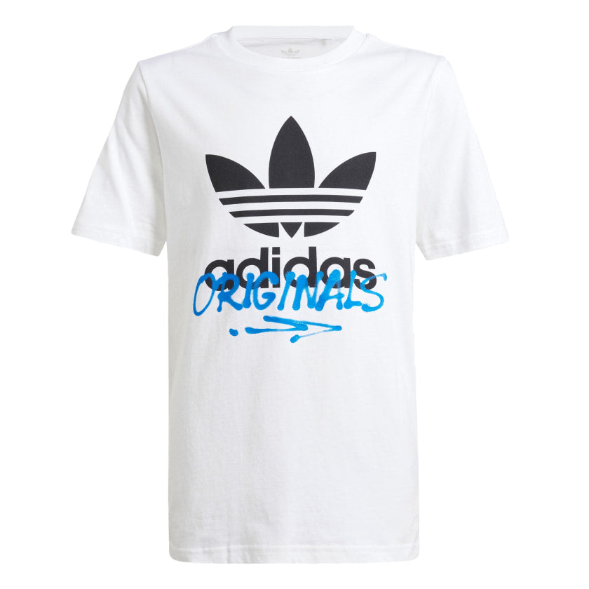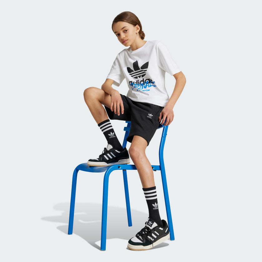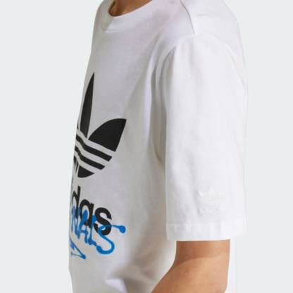 Show your adithtdas pride with this juniors' graphic tee. The centerpiece is an eye-catching graphic in high-gloss rubber that puts an edgy spin on the classic Trefoil logo. Soft cotton material and a ribbed crewneck add the finishing touches.
